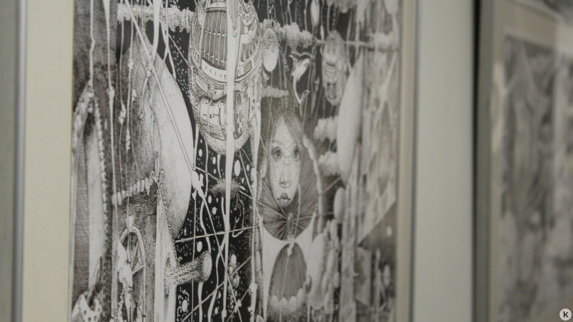 Художник использует тушь, аэрограф и рапидограф, создавая из тонких линий фантастические миры. В одних его произведениях можно найти отсылки к классическим сюжетам, а в других — совершенно неожиданные сочетания образов, которые заставляют задуматься о сложности мира.