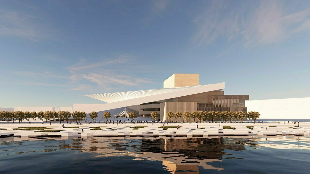 Филиал Большого также расположен на Октябрьском острове. Архитекторы из норвежского бюро Snøhetta вдохновлялись балетным движением «ку-де-пье», что отразилось в форме здания — гиперболическом параболоиде.