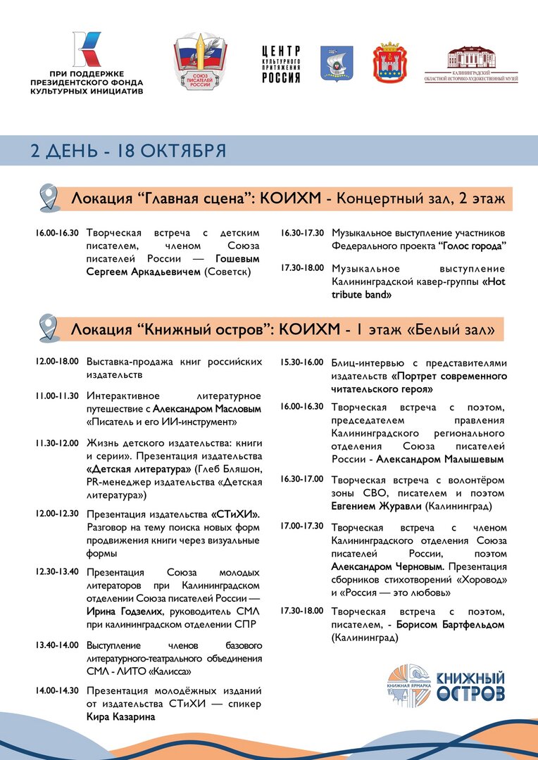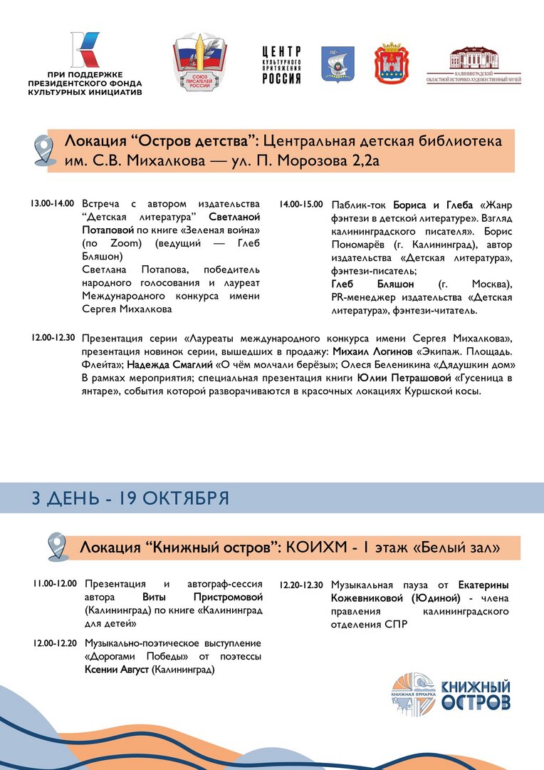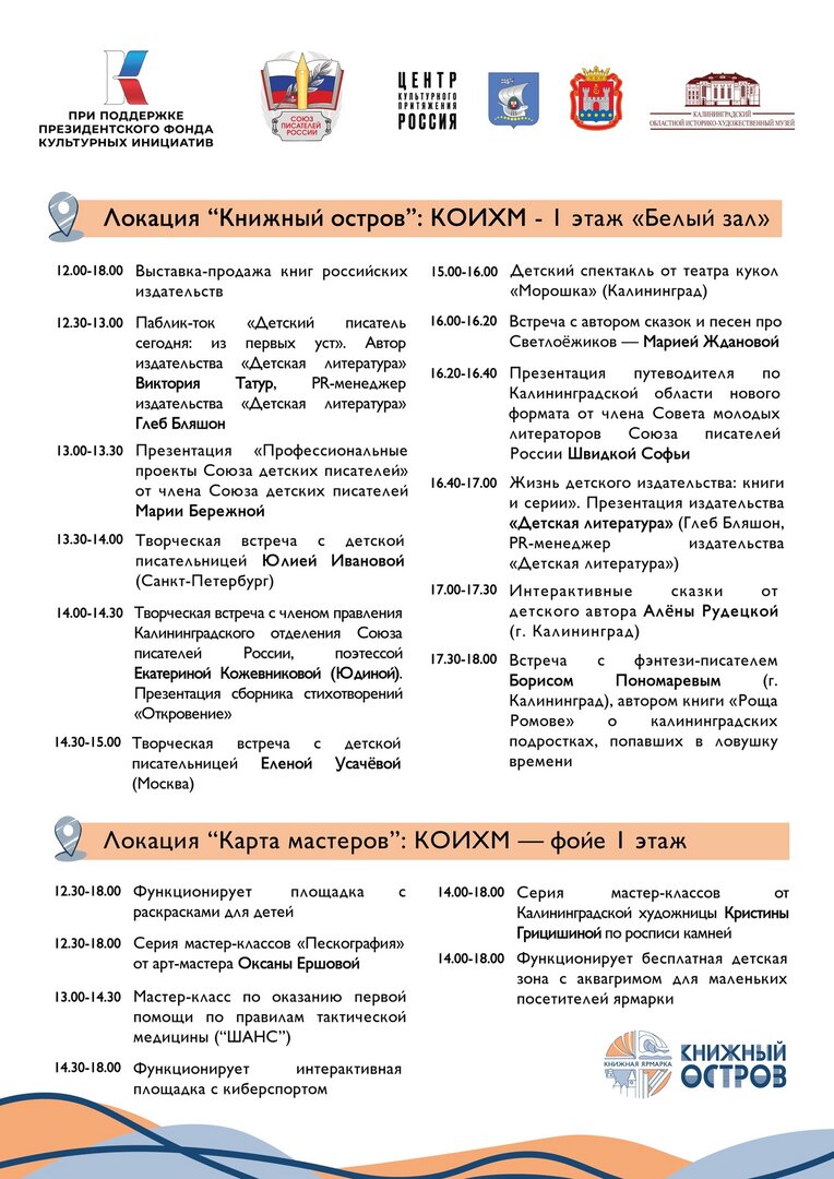 Книжная ярмарка нового формата пройдёт в Калининграде. Организаторы — Союз писателей России при поддержке Президентского фонда культурных инициатив.