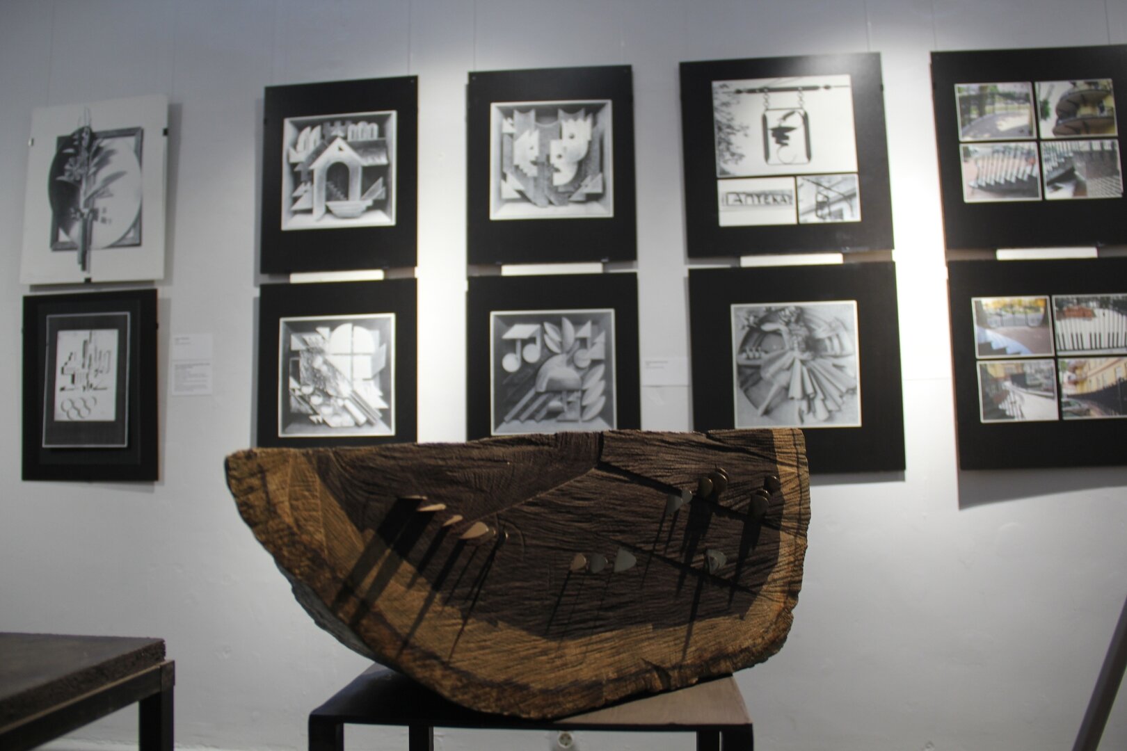 Выставка «Окна в мир» объединила произведения из разных периодов: на ней представлены работы в графике и акварели, а также арт-объекты из дерева и металла. Гости могут увидеть порядка 70 экспонатов.