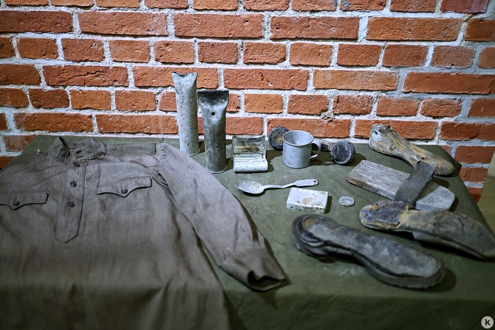 «Особую ценность представляют подлинные артефакты — обувь и ложки военнопленных из Шталаг-1А Штаблак, крупнейшего лагеря региона, где содержалось более 162 тысяч узников и погибло 255 тысяч человек», — рассказали устроители выставки.