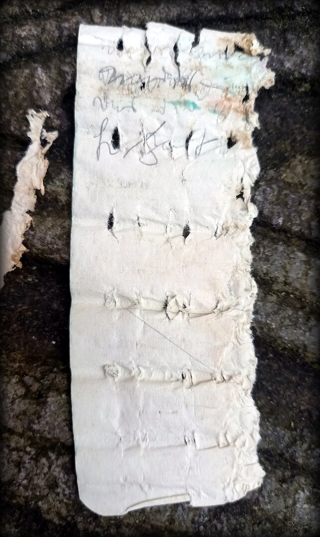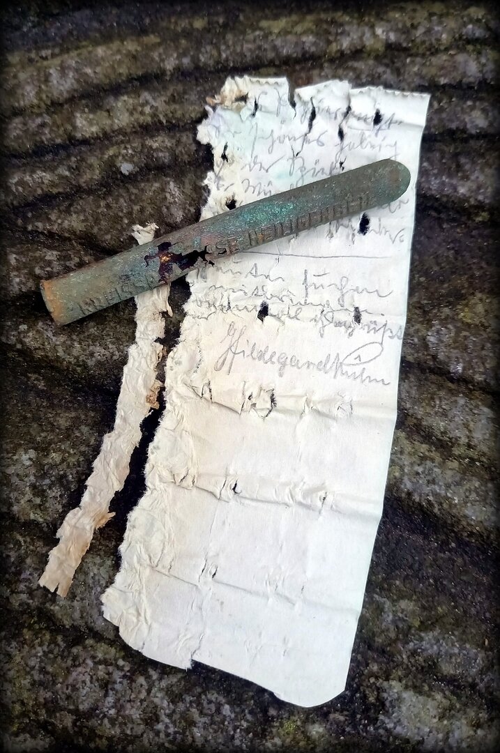 Внутри капсулы сотрудники музея нашли свёрнутый кусочек бумаги, исписанный с обеих сторон. Из-за времени и условий хранения чернила поблекли, поэтому прочитать текст пока невозможно. «Носители языка не смогли», — сетуют в музее.