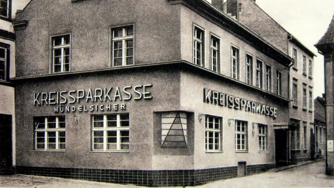 До 1945 года здание сберкассы находилось в центре города, неподалёку от ратуши. Сейчас оно полностью разрушено — не сохранилось даже руин.