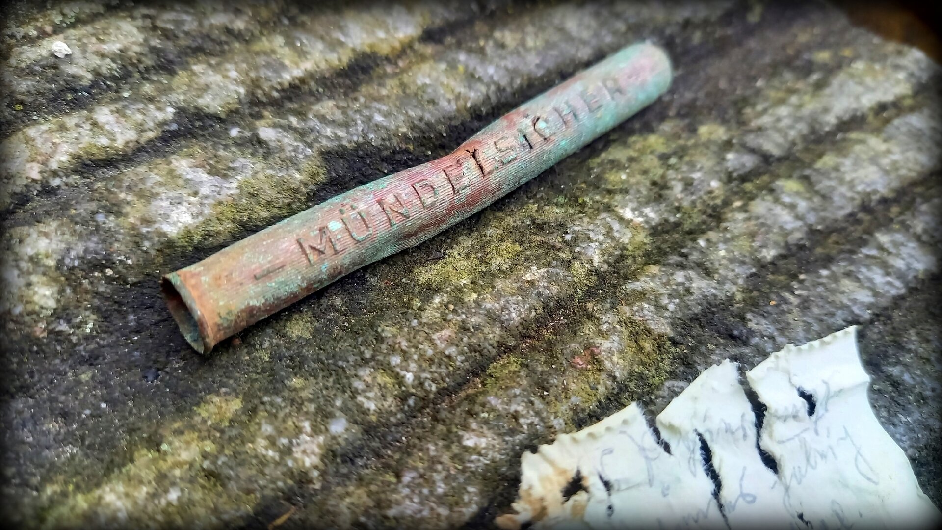 Небольшую металлическую капсулу длиной около 7,5 см и диаметром с карандаш передал музею местный житель. На одной стороне футляра выгравировано «KREISSPARKASSE HEILIGENBEIL», на другой — «MÜNDELSICHER».