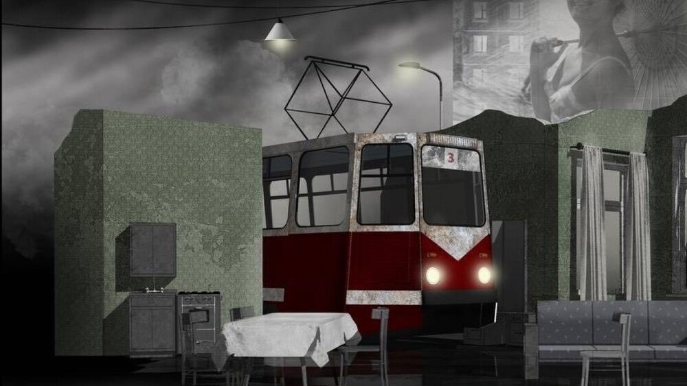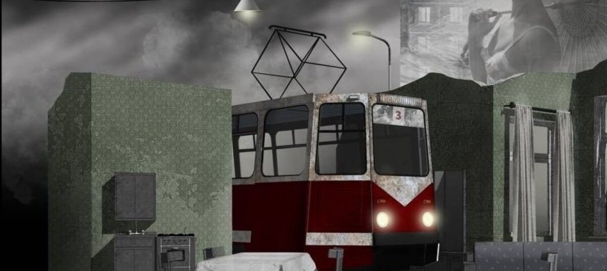 На сцене калининградского драмтеатра этот «анекдот» оборачивается метафизической катастрофой. В квартиру главного героя врезается трамвай — не метафорически, а буквально. Так сценограф Анвар Гумаров изобразил взрыв, который производит в жизни профессора Чарышева одно-единственное письмо.