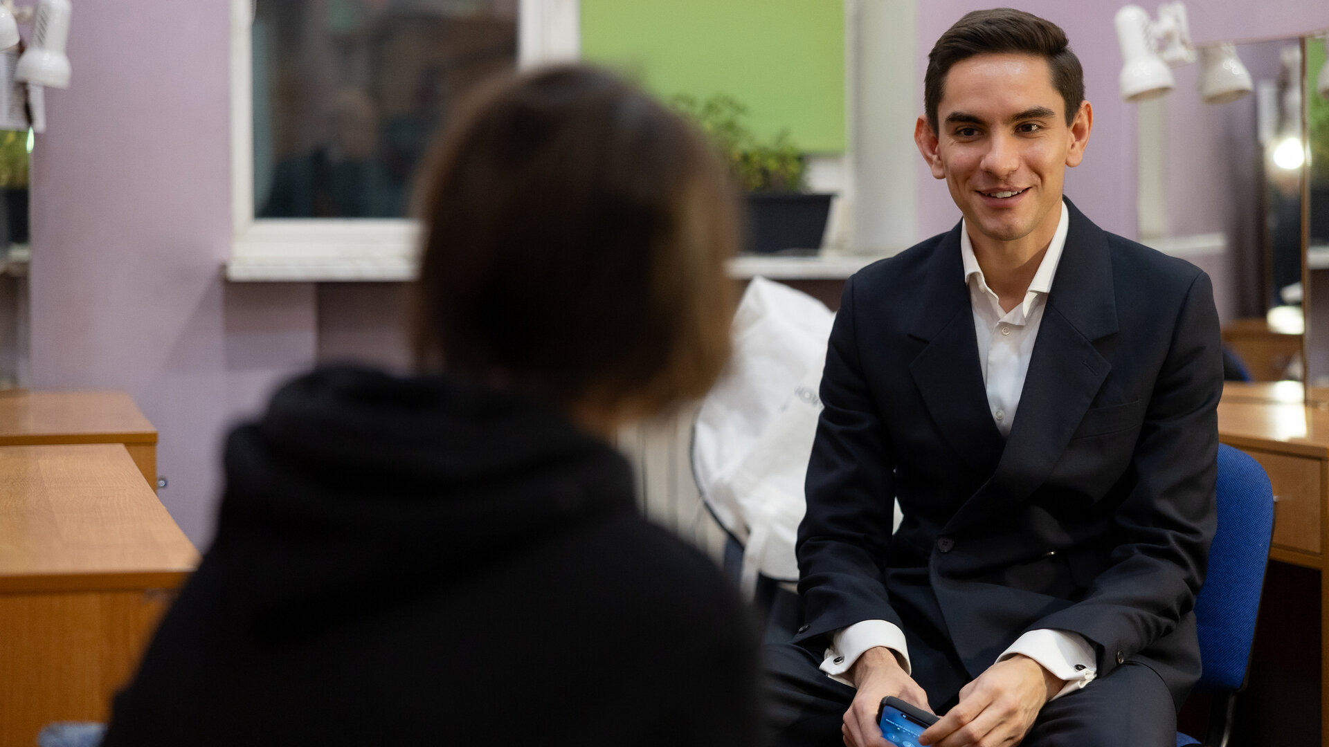 У звезды вечера есть не больше получаса до выхода на сцену, но он соглашается ответить на несколько вопросов.