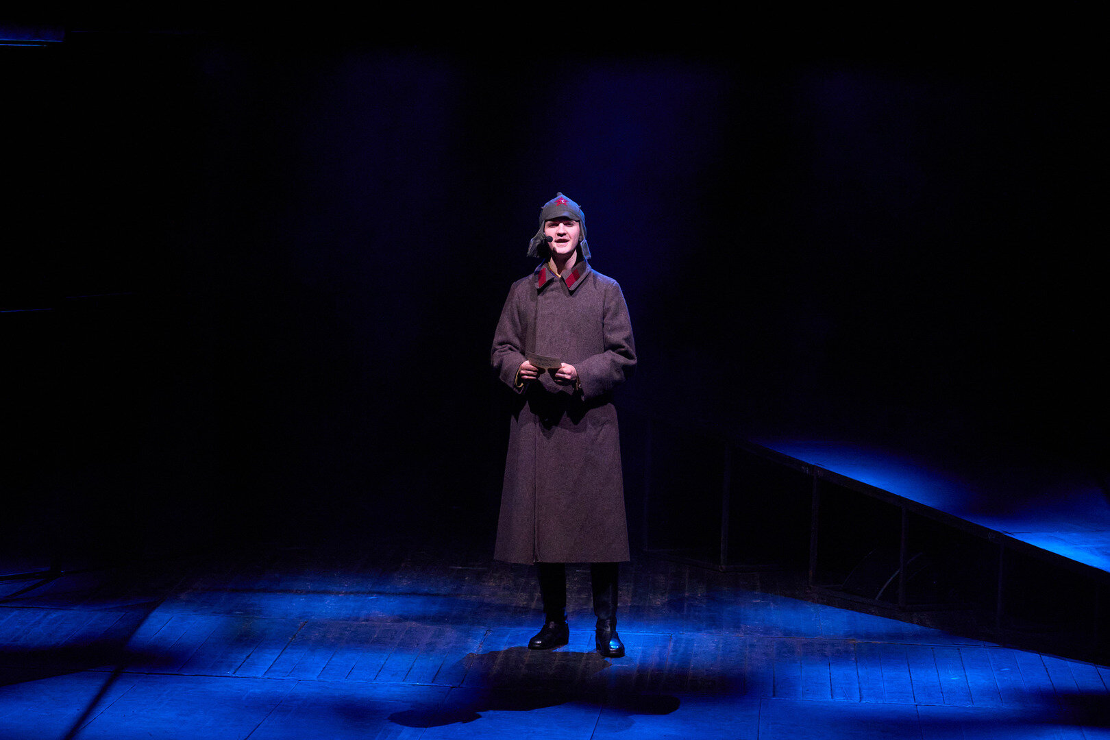 И только ближе к финалу режиссёр позволяет зрителю немного перевести дух: на сцене появляется дебютант Лев Зингер, Иван-внук. Первая же реплика мальчика вызывает в зале тёплый смех. Трогательный и чуть нелепый в слишком большой для него фуражке курсантик настолько естествен и органичен, что как будто смывает этими освобождающими улыбками мучительный надрыв — и хочется верить, что теперь-то уж всё будет хорошо.