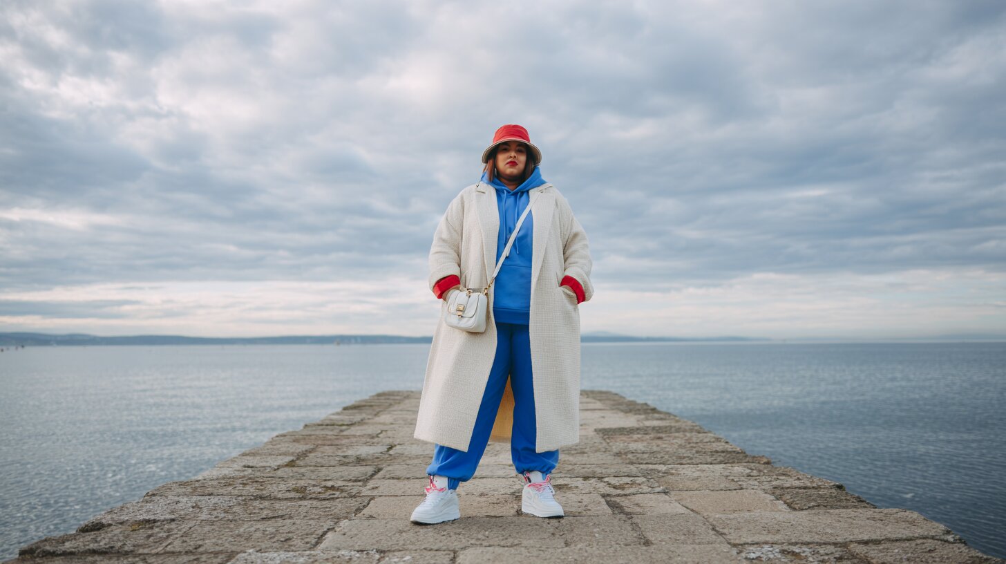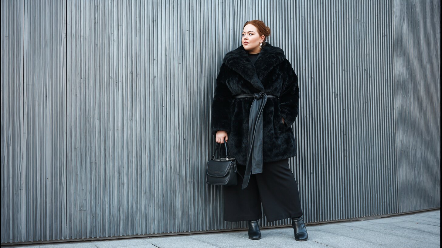Первое, на что стоит обратить внимание, — качественное длинное пальто. Оно создаёт вертикаль, визуально вытягивая силуэт, что особенно важно для корпулентных дам.