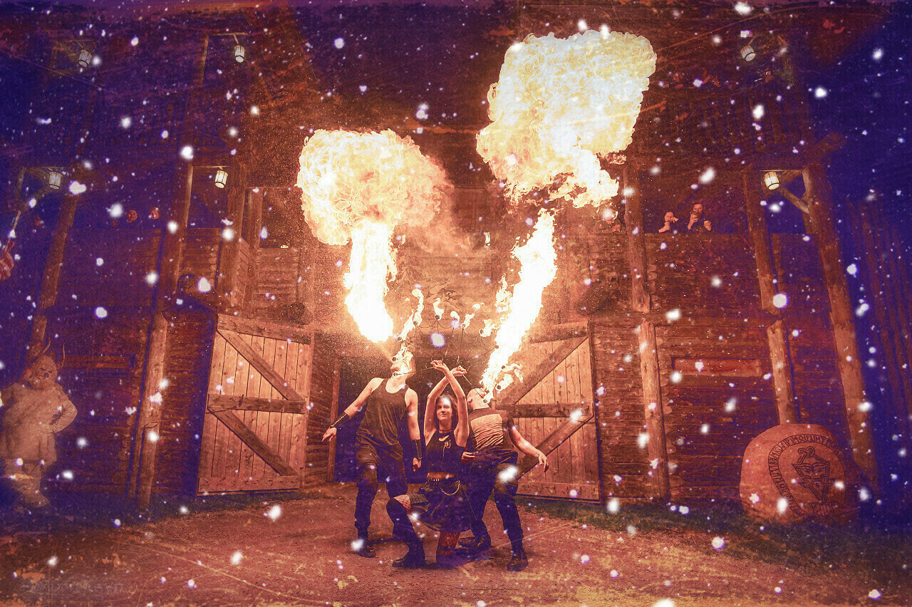 На территории будут работать тематические зоны и средневековая кухня с блюдами, вдохновлёнными историческими рецептами. Вечером программу дополнит огненное шоу «Рагнарёк — Последняя битва богов»: театрализованное представление по мотивам скандинавской мифологии с богами Девяти миров, воинами Асгарда, огненными танцами валькирий и масштабными боевыми сценами.