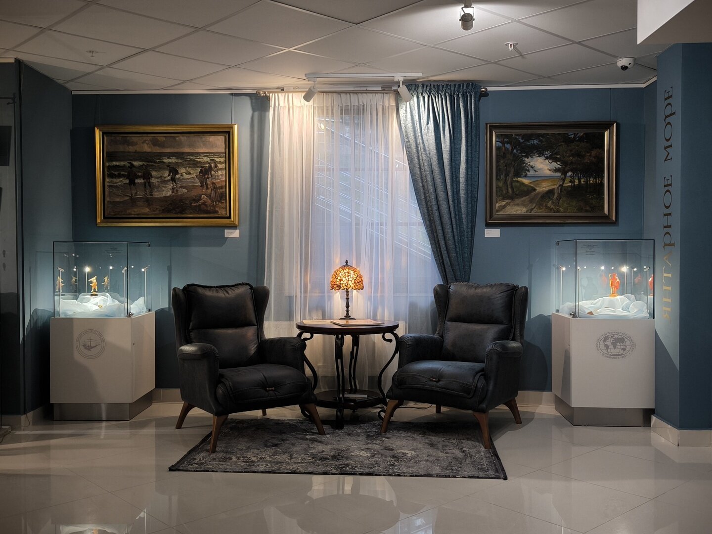 В залах представлены произведения декоративно-прикладного искусства из янтаря, а также редкие палеонтологические и геологические находки. Есть на выставке и карты, на которых показано, где в Средневековье добывали сукцинит.