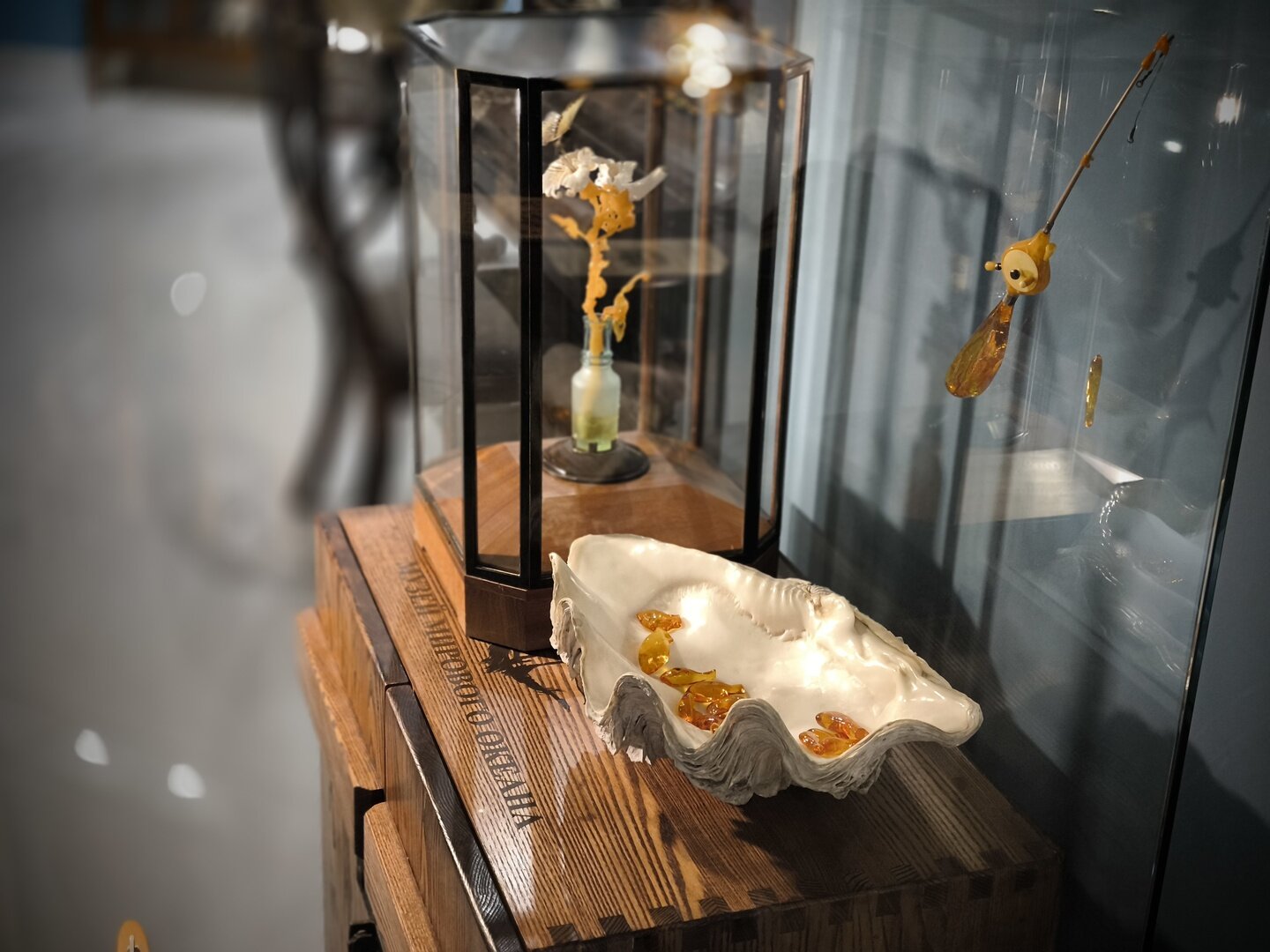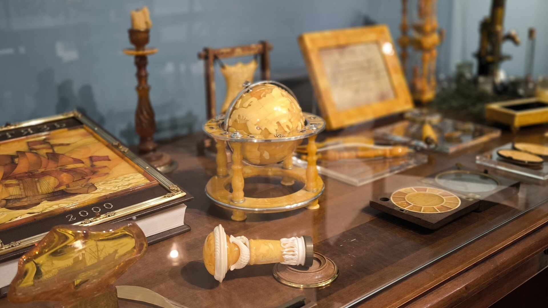 Сейчас коллекцию дополнили предметы, связанные с далёкими портами: янтарные обезьяны, попугаи, слон, сачок для бабочек и походный набор энтомолога. Для их создания использовался не только балтийский янтарь, но также японский и доминиканский.