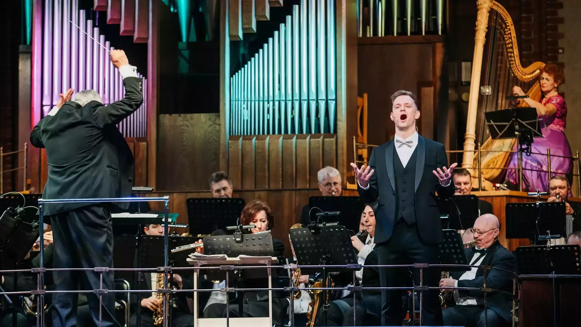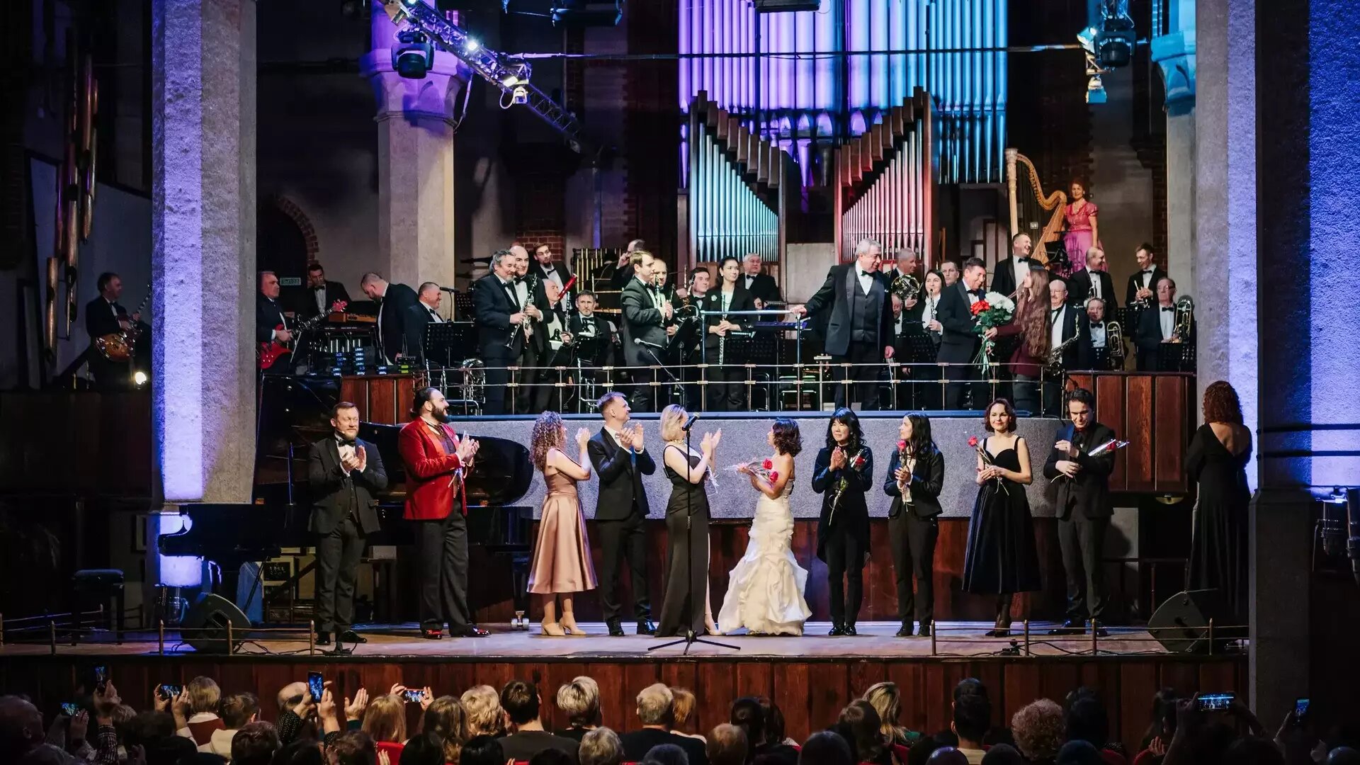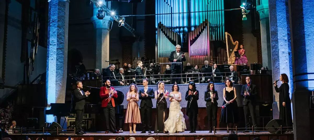 Торжественно и ликующе вибрируют в воздухе аккорды другого вальса — из музыкальной композиции Арама Хачатуряна к лермонтовской драме «Маскарад» в исполнении Концертного духового оркестра Калининградской филармонии. Оркестранты остаются с нами до конца вечера, рождая ошеломительное по разнообразию обрамление для каждого номера. Строгие академические арии сменяют классический французский шансон, задорная игривая оперетта, ретро и современные эстрадные хиты.