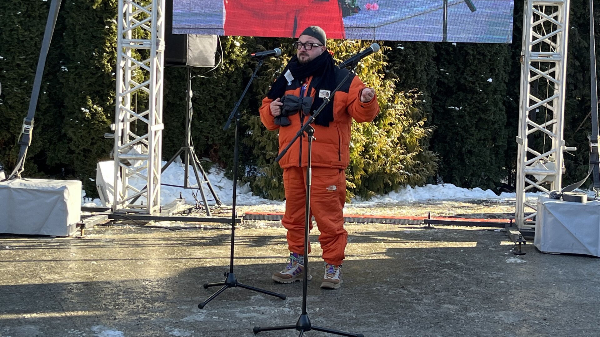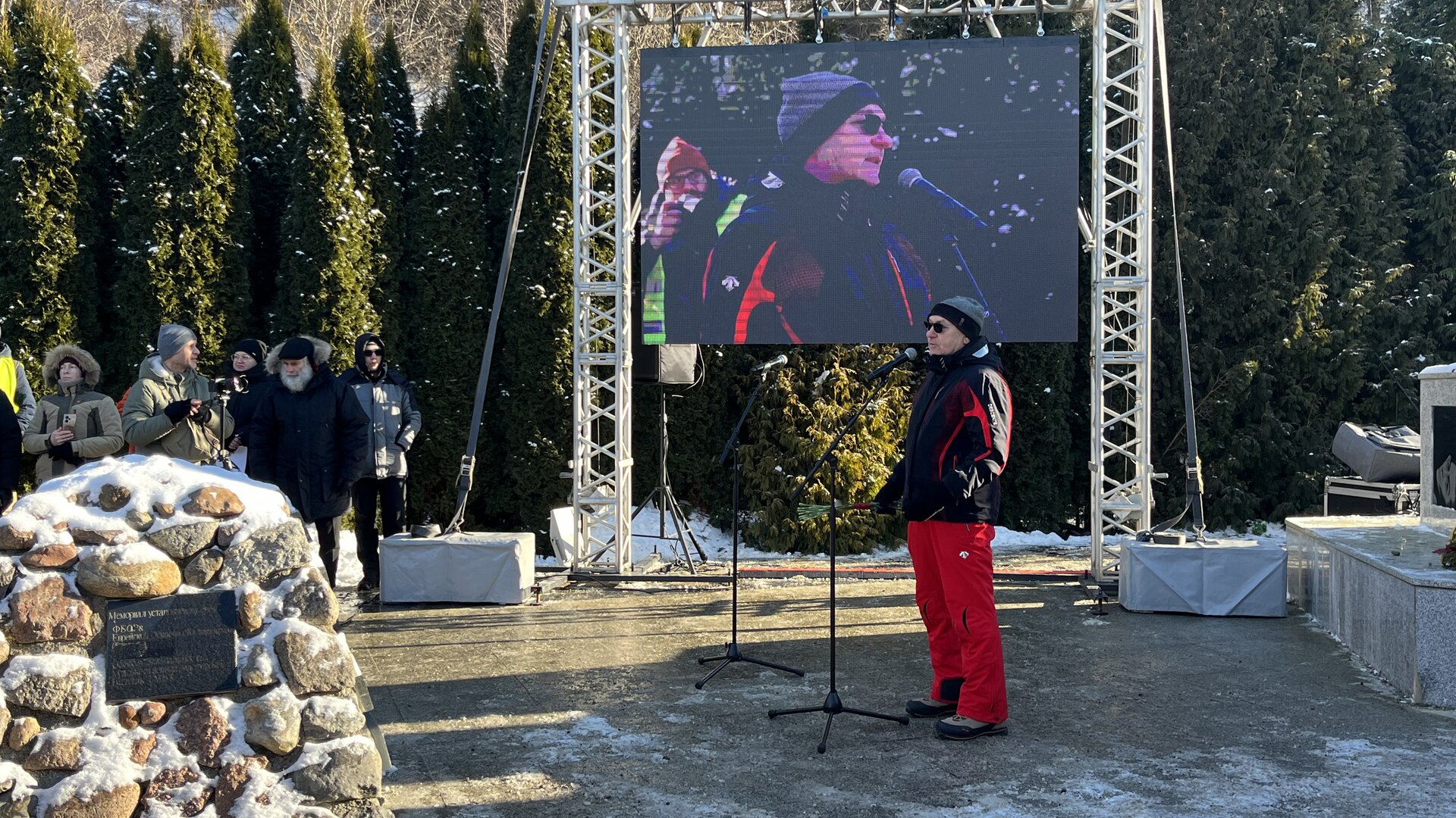 Заместитель председателя правительства Калининградской области Сергей Булычёв в своём обращении напомнил, что 81 год назад погода была почти такой же — морозной и солнечной. Только, в отличие от хорошо одетых и сытых участников марша, эти люди зачастую не имели даже обуви. «Пока жива память — будут живы и они», — сказал Булычёв.
