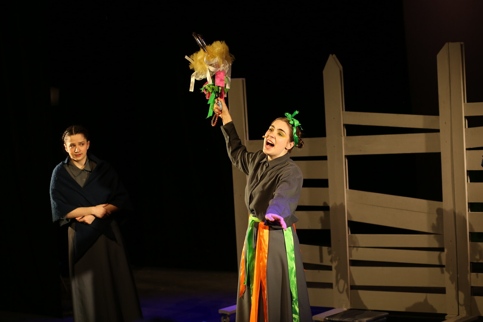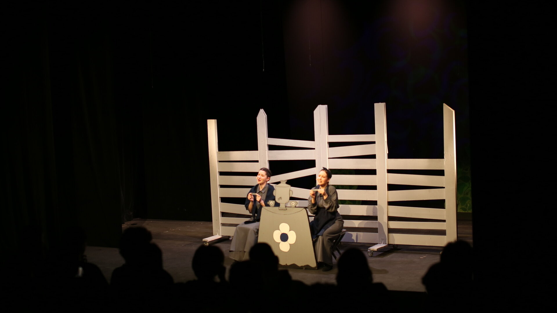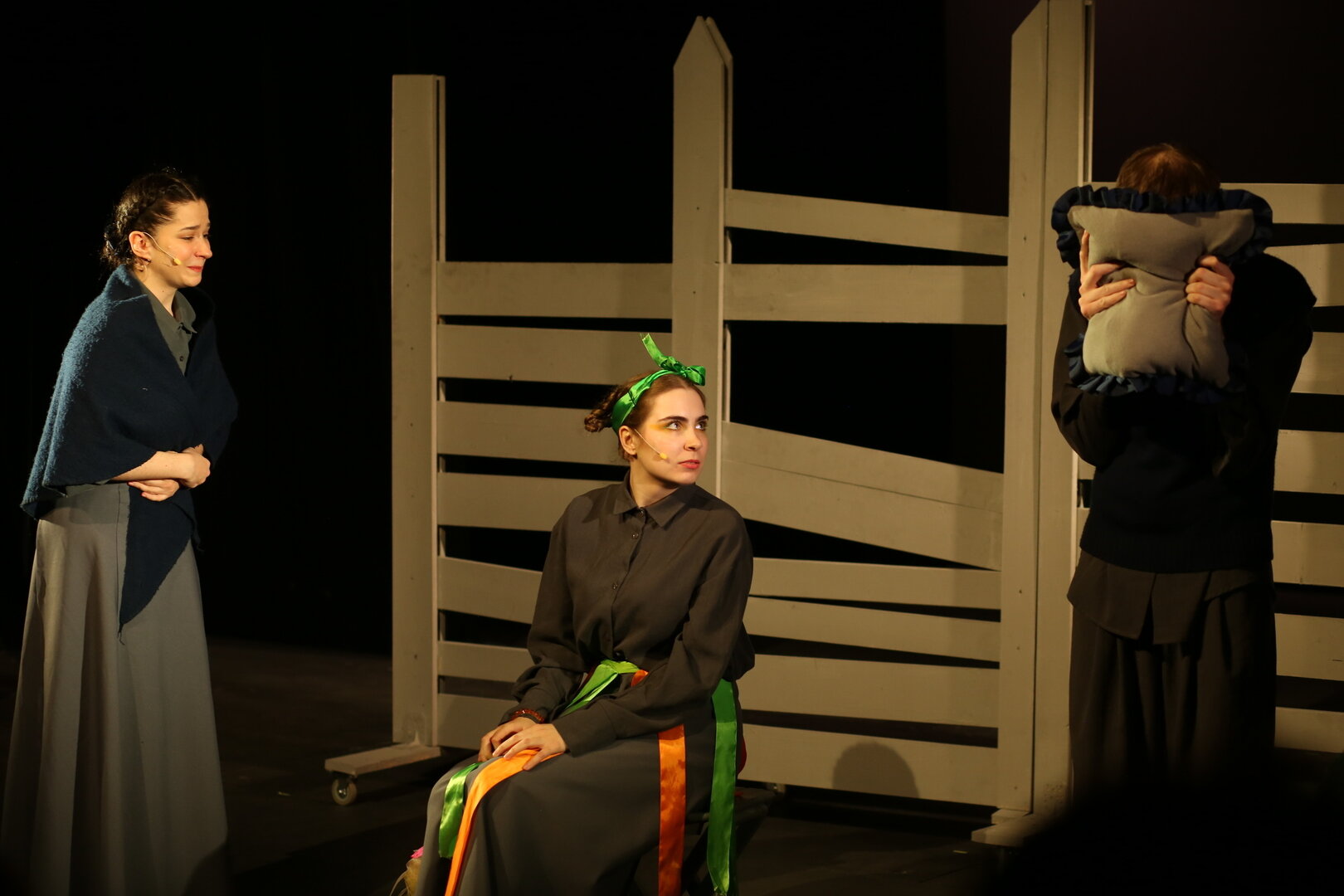 В первые мгновения это странно: худенькие девушки у картонного самовара изображают степенных мещанок старой Москвы. Даже вдвоём молодые актрисы размером примерно с одну Павлу Петровну из советской экранизации. Но это перестаёт быть проблемой, когда они начинают играть.