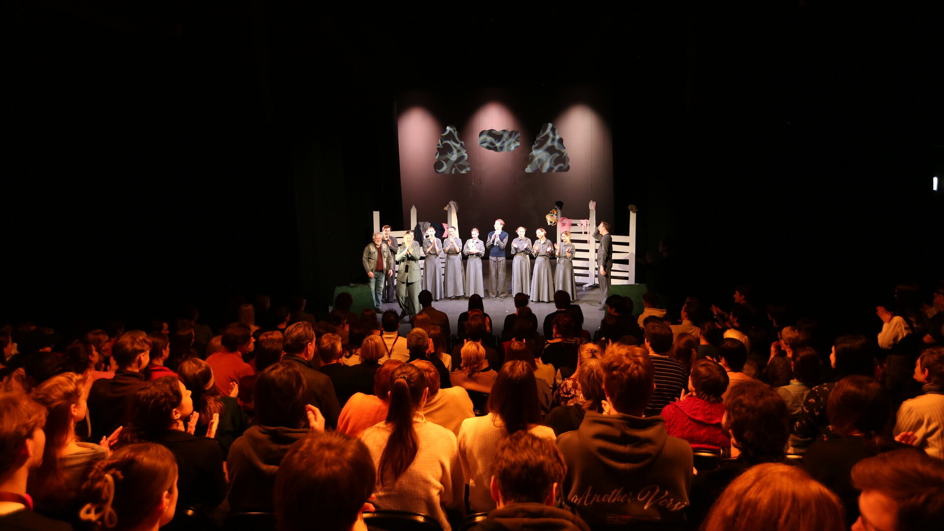 Вечером в среду, 11 февраля, в Калининграде показали необычный спектакль. На сцену, конечно, вышли артисты — но и в зале артисты, а вот обычных зрителей почти и не было. Это студенты училища имени Гнесиных на фестивале «Большой дебют» представили мюзикл «Женитьба Бальзаминова» по пьесе Александра Островского. На премеьере побывал «Клопс».