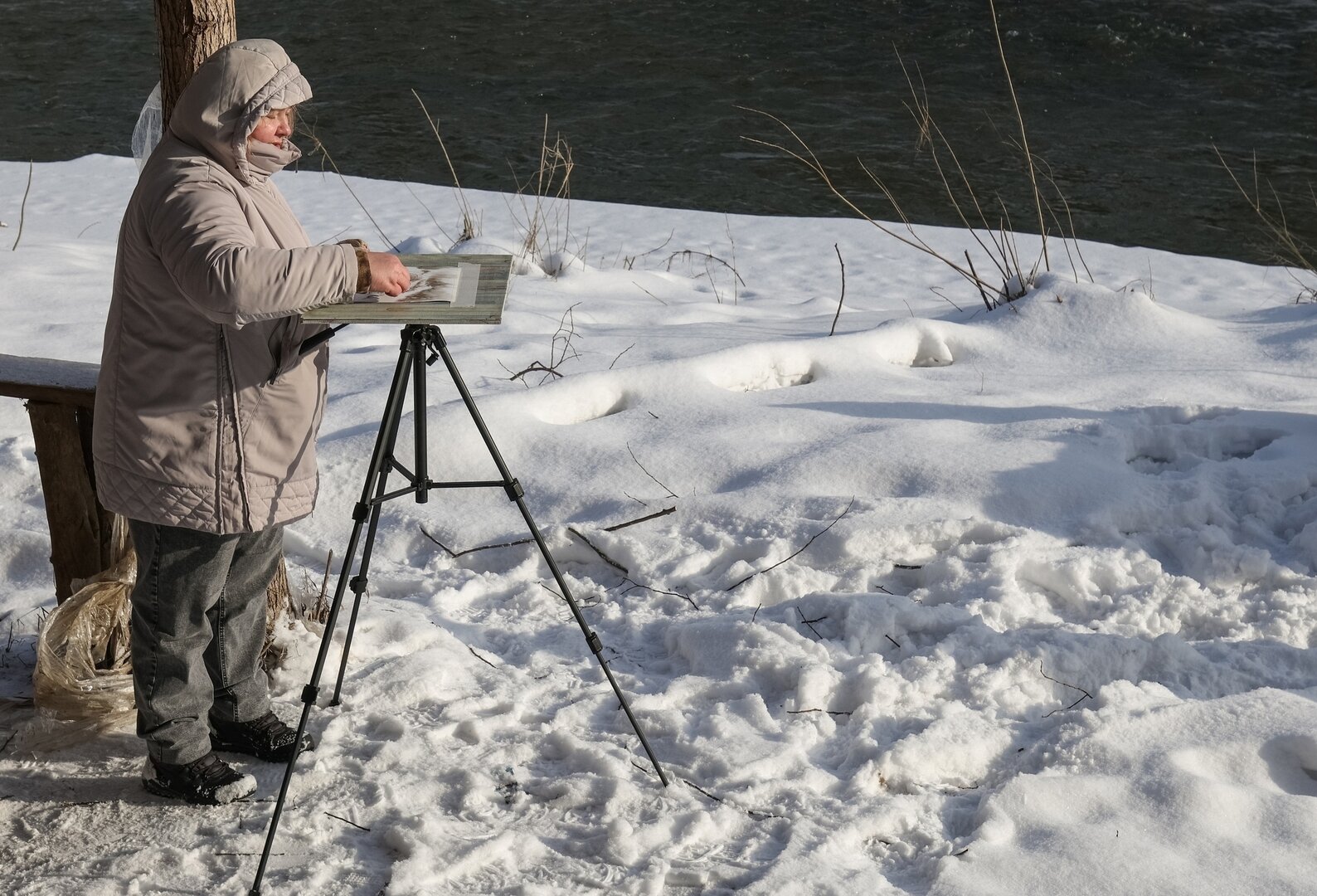В Инстербурге участники получили творческое задание и разделились на три группы. Первая команда под руководством черняховского фотографа Юрия Таркина отправилась к плотине на реке Анграпе, чтобы запечатлеть зимние пейзажи и водоплавающих птиц возле незамерзающей полыньи.
