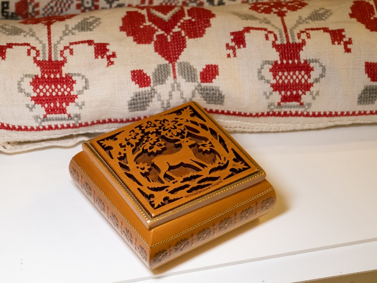 Но тканые изделия — это ещё не всё. В Калининград привезли предметы, связанные с жизнью известных белорусских писателей. На выставку попали их личные вещи: книги, фотографии, сувениры и украшения.