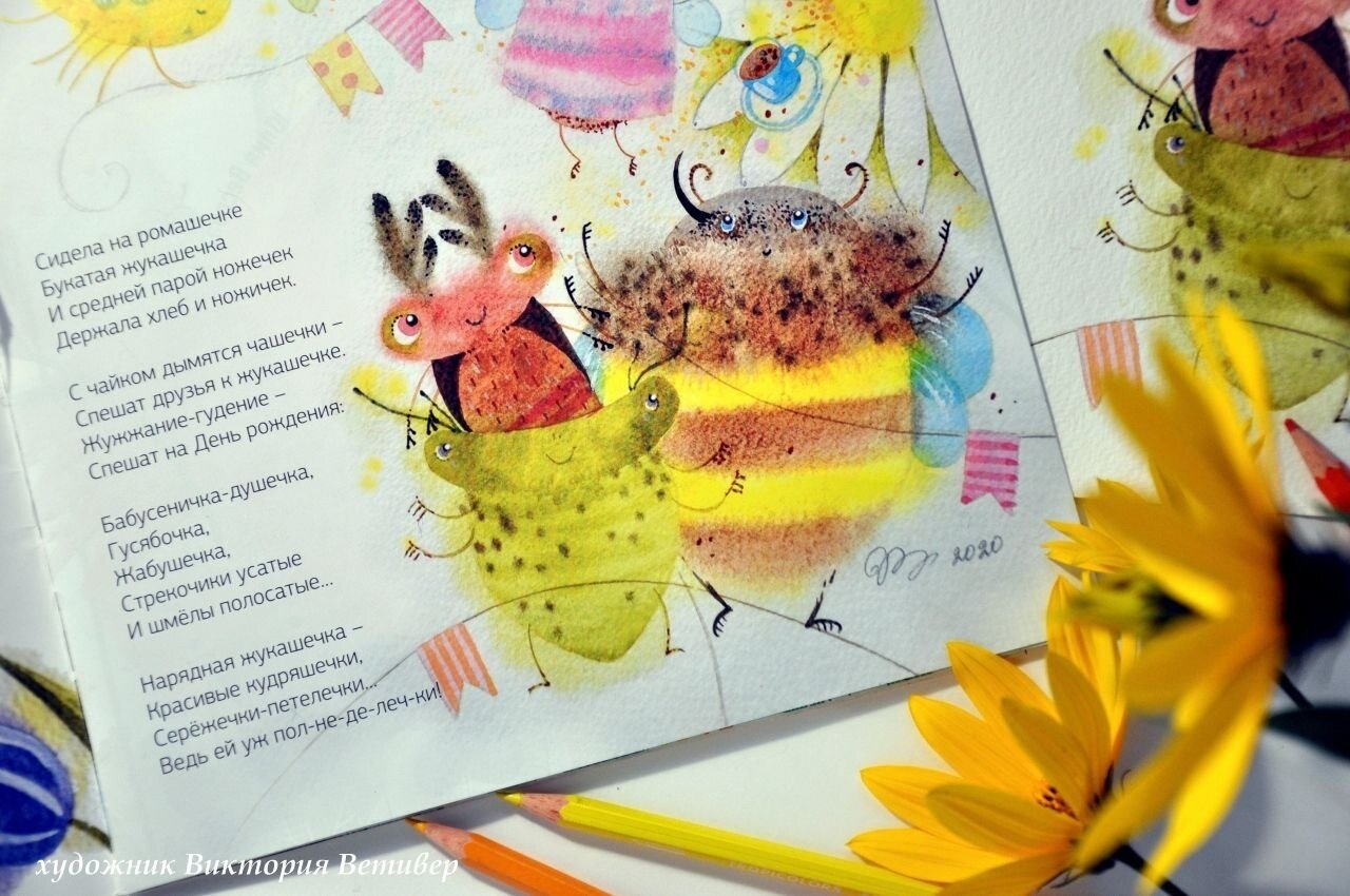 Но задачи книжного иллюстратора гораздо интереснее, чем просто нарисовать картинку. Порой это превращается в настоящую головоломку: например, когда на одном развороте — три-четыре стихотворения: одно про улыбку, второе про слонёнка, третье про дождик. Да ещё и от разных авторов!