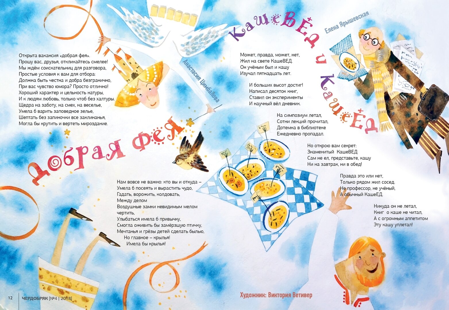 Это очень интересный квест: придумать иллюстрацию, которая бы объединила все стихотворения на развороте».