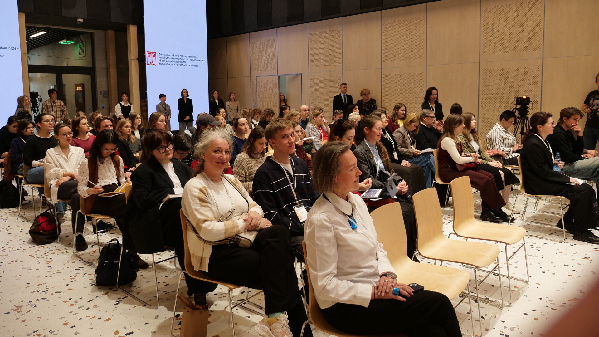 В зале шумно: пока торжественное открытие не началось, будущие артисты собираются группками, болтают и смеются. Серьёзное мероприятие стартует в самой лёгкой и дружелюбной атмосфере. Ведь как можно сухо говорить о живом театре?