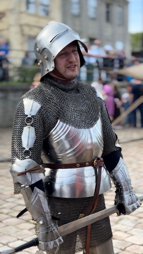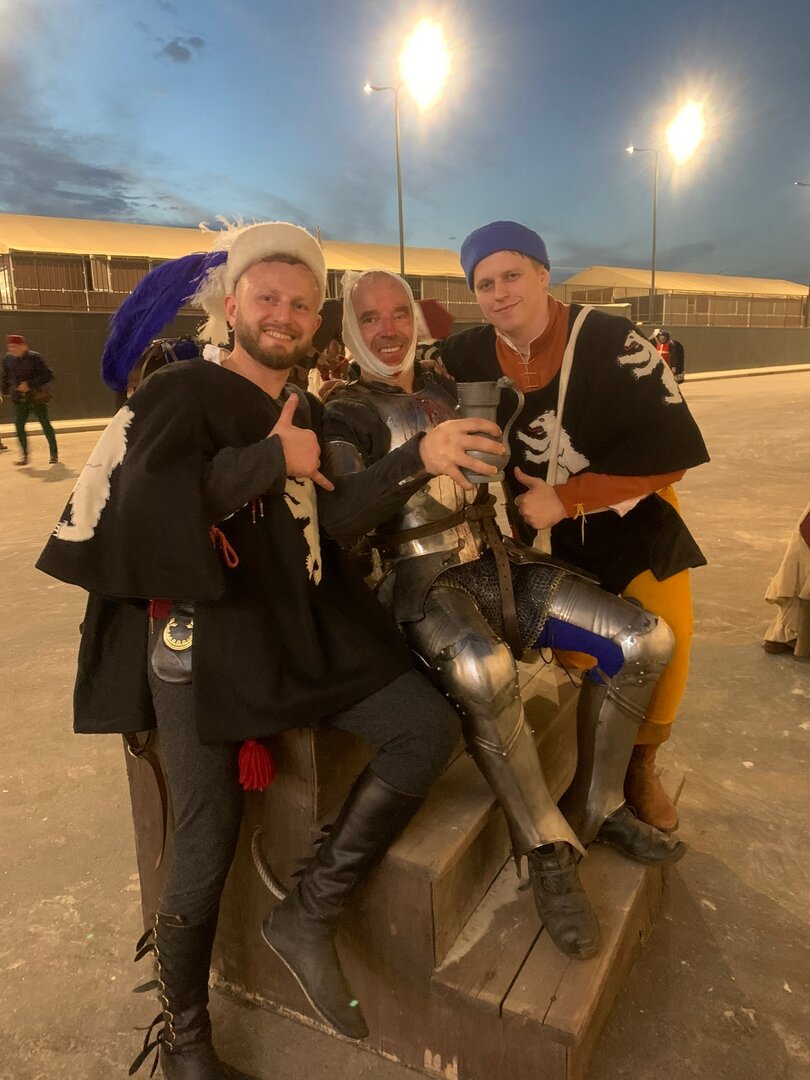 Пока он участвовал в турнире как оруженосец французского рыцаря Алена Мену. Не в том смысле, что человек изображал средневекового француза — нет, это правда был реконструктор из другой страны.