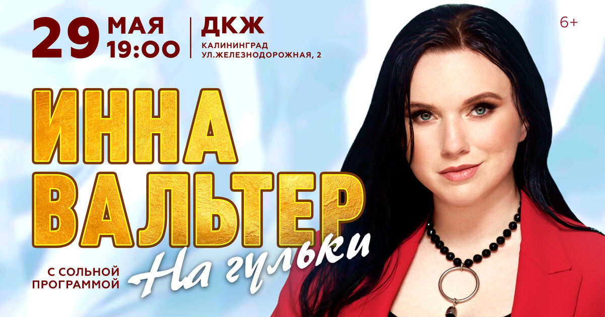 В калининградском Дворце железнодорожников в пятницу, 29 мая, выступит певица Инна Вальтер. Артистка представит новую концертную программу, сообщили «Клопс Афише» организаторы.