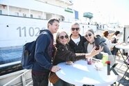 Впрочем, не все могут позволить себе раздеться. В одной из палаток с гостями общаются солидные мужчины в морской форме, и на груди у каждого — ряд блестящих медалей. Это капитаны и ветераны рыбопромыслового флота. Их истории вызывают огромный интерес: небольшой павильон забит до отказа. Некоторые слушатели — в основном школьники — внимают каждому слову, раскрыв рты.