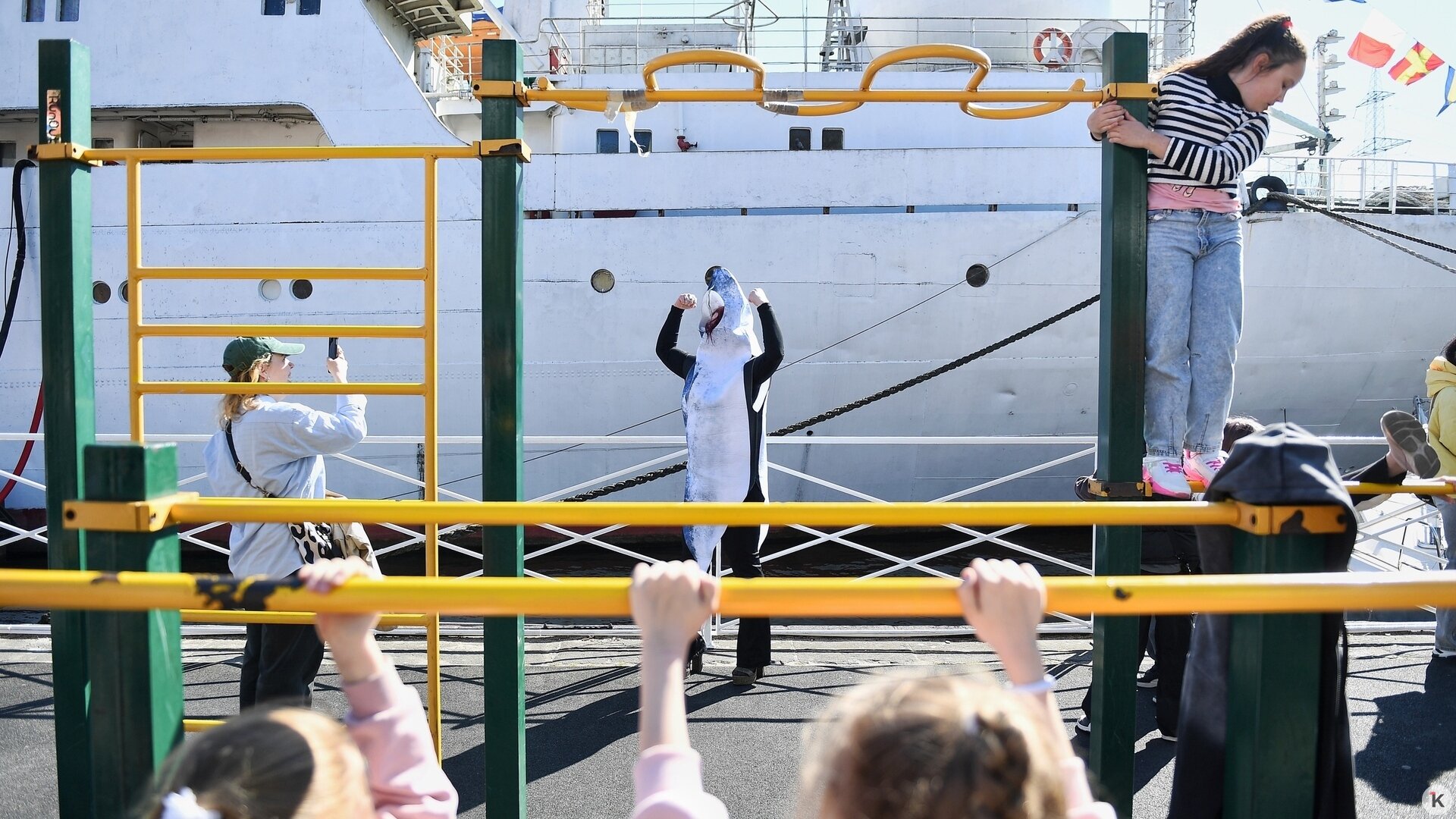 Радостнее всех на набережной, конечно, дети. Праздник — отличная возможность облазить всю набережную, изучить интерактивные экспонаты и даже поваляться в песке, пока взрослые не видят. А малыши, увлечённые творчеством, могут порисовать на открытом воздухе — или побывать на площадке аквагрима и примерить на себя образ морского существа.