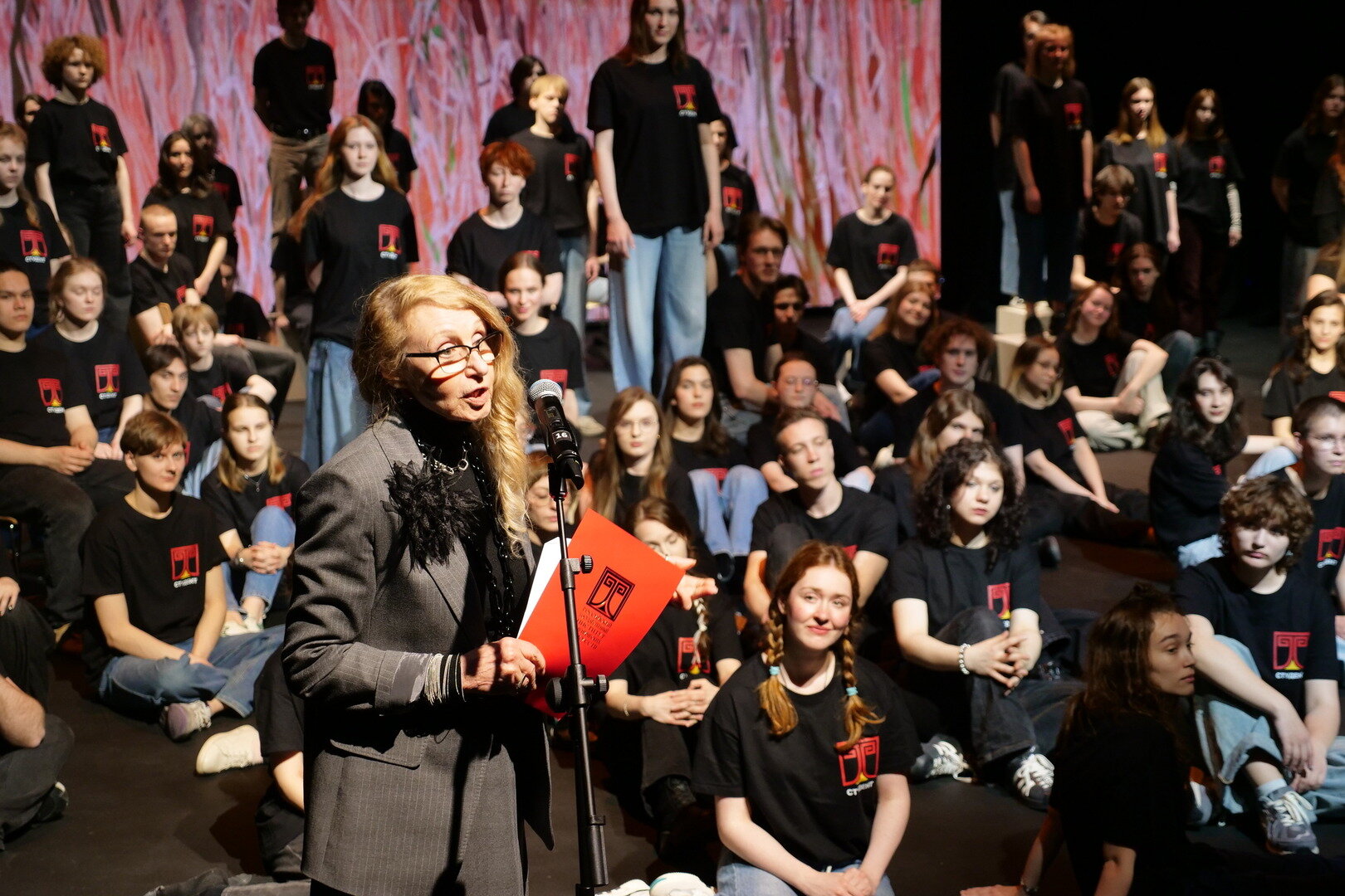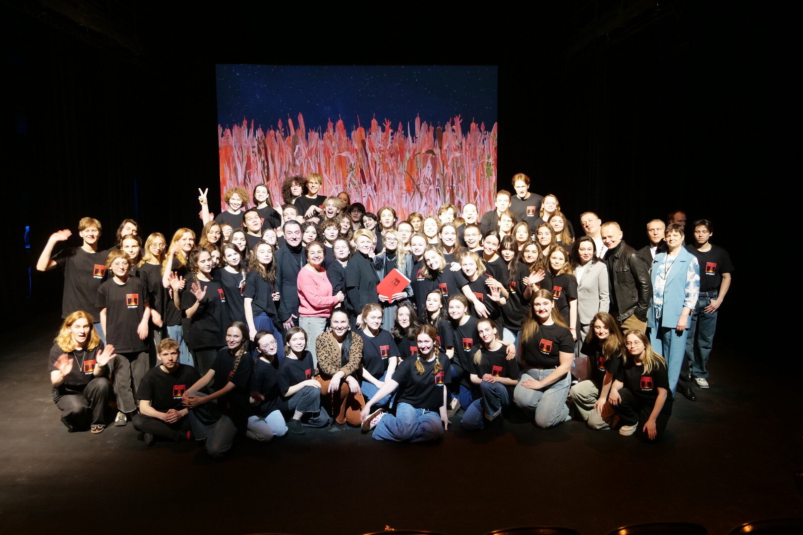 На сцене собрались все студенты филиала — каждый, кто был задействован в спектакле. Их немало для камерной сцены — но не так уж много для колоссальной работы, которую только что увидели гости. Ребят и режиссёра Наталью Никуленко благодарят громкими аплодисментами.