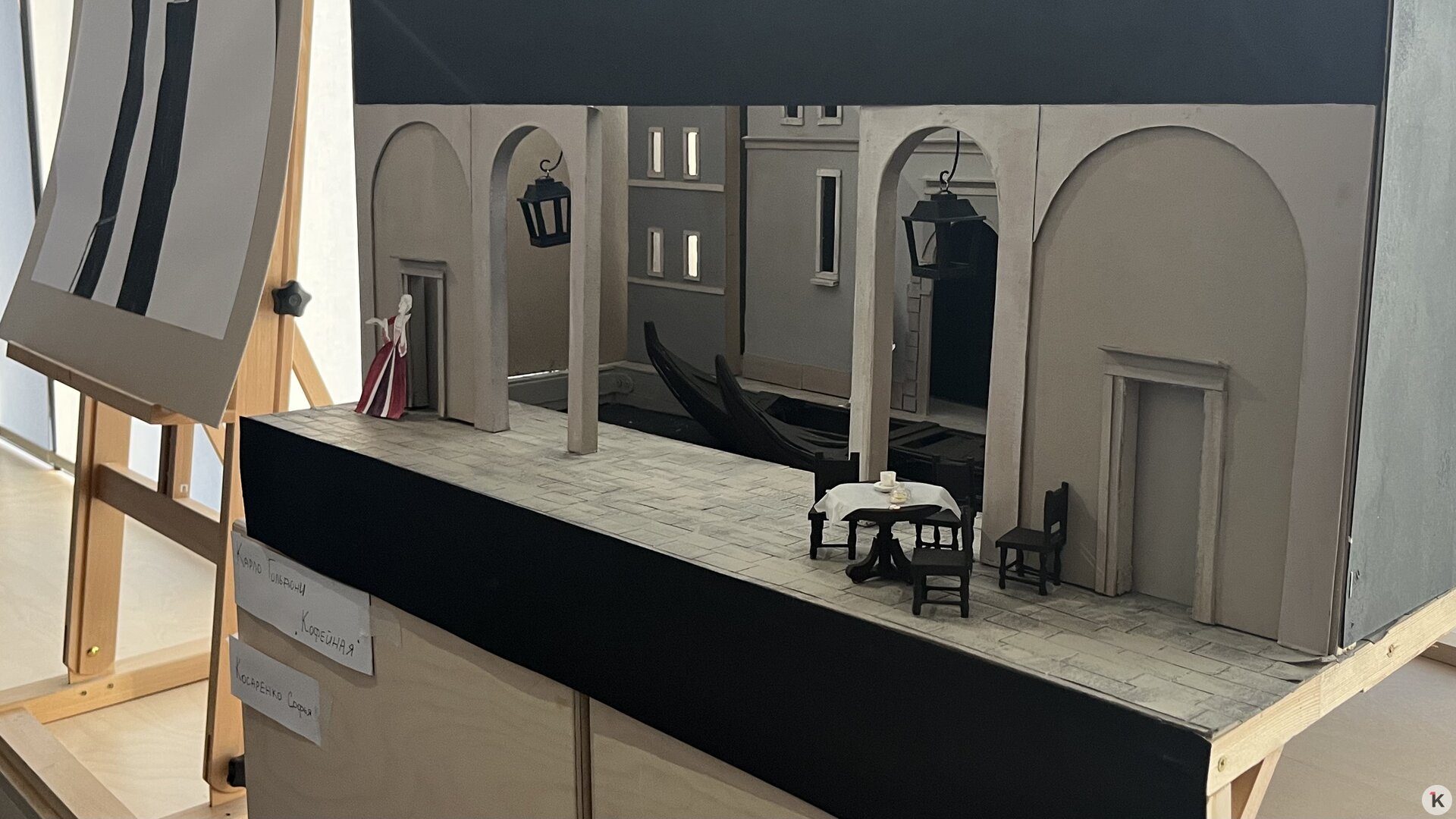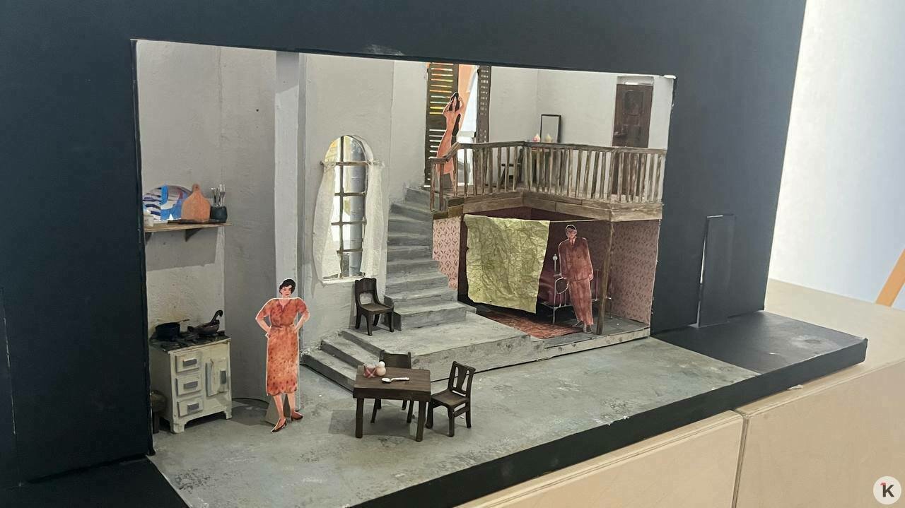 А с другой — макеты сценографии. Здесь зрители могут рассмотреть уменьшенные декорации, мебель и антураж.