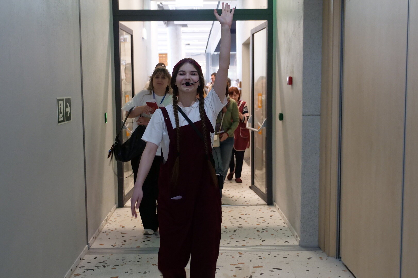 Отрепетированную сценку тут же и показывают — со всей экспрессией, которую может вместить узенький коридор. После чего громкоговоритель зовёт артистов на сцену, и они исчезают, чтобы больше сегодня не появиться. А жаль: её хотелось бы посмотреть полностью — особенно тем из зрителей, которые успели приложить руку к репетиции.