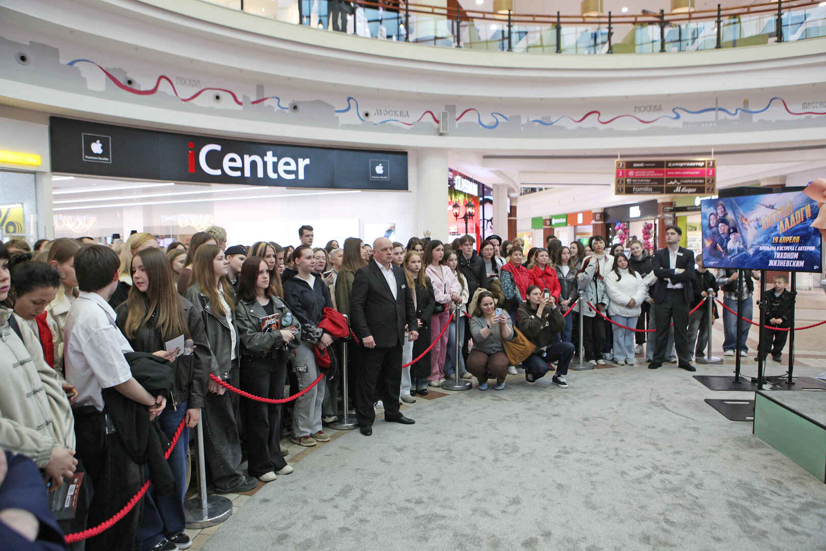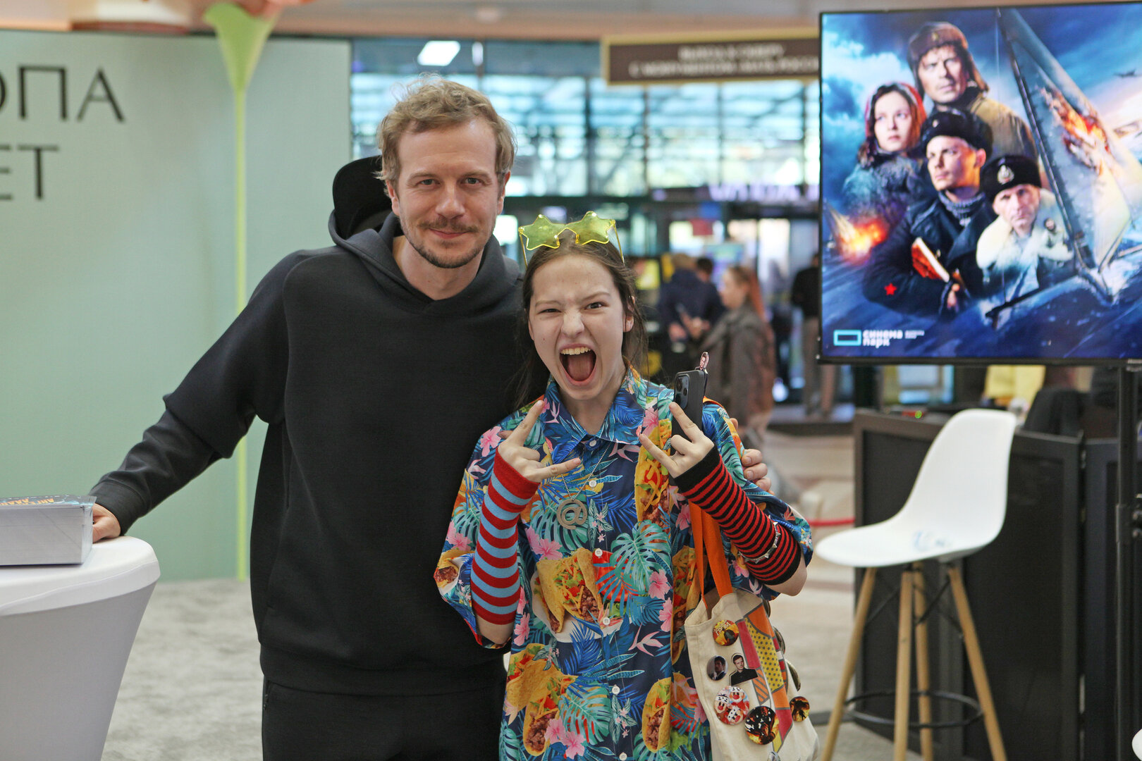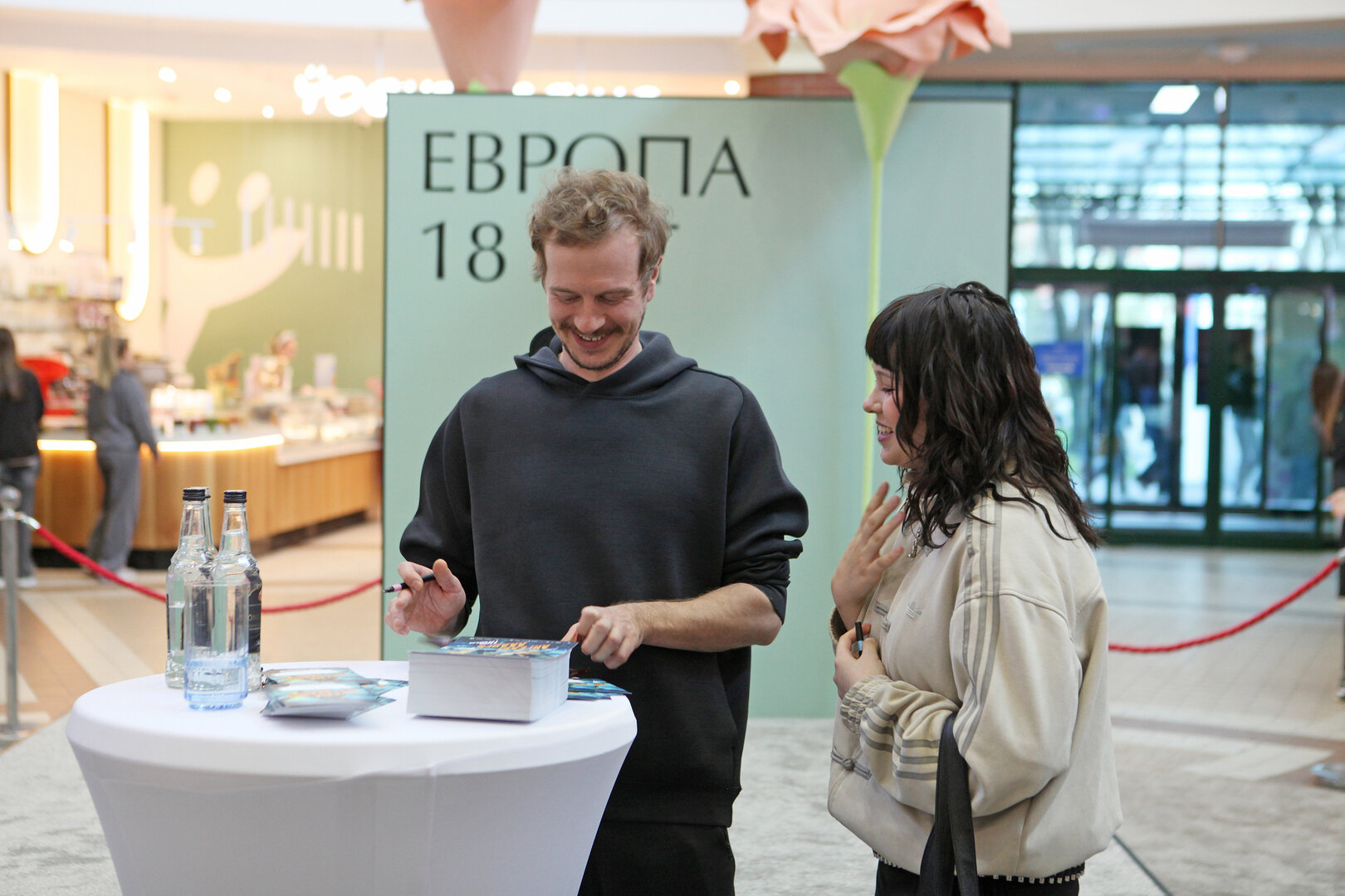 Увидеться с актёром в этот его приезд могли все желающие: площадка располагалась прямо у входа в один из атриумов. В итоге пообщаться с гостем собралась большая толпа, причём многие оказались там спонтанно.