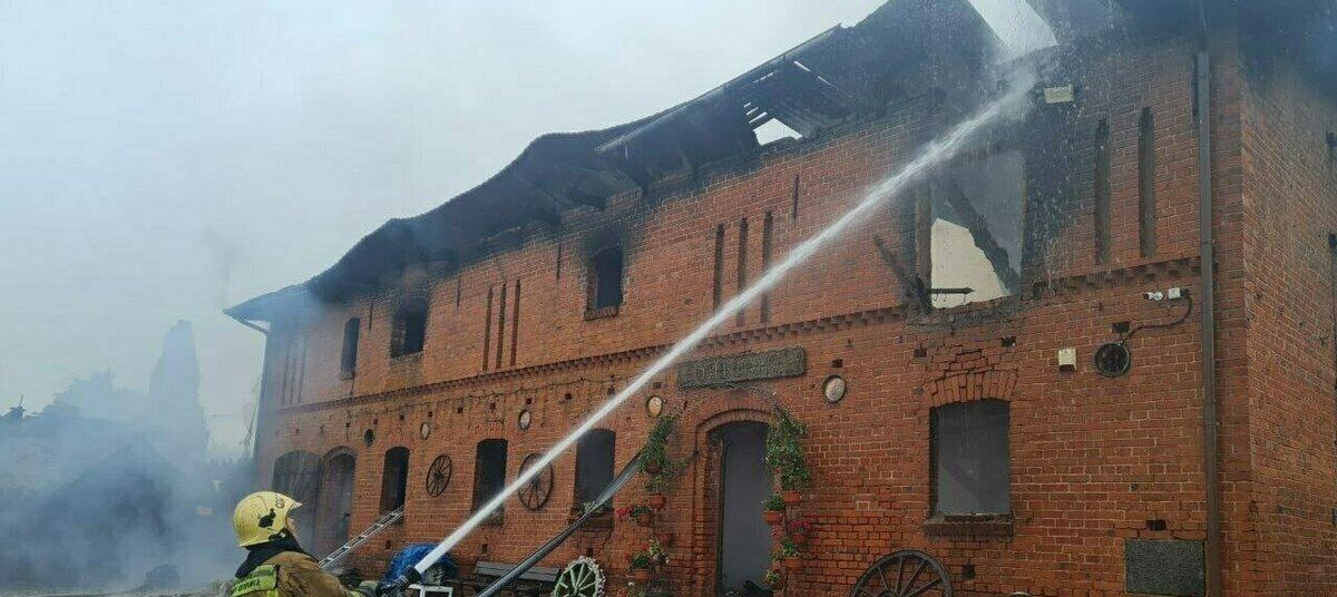 Пожар на территории замка Шаакен в Гурьевском районе произошёл 11 июля прошлого года. Загорелась кровля кафе, никто не пострадал, но зданию потребовался серьёзный ремонт.