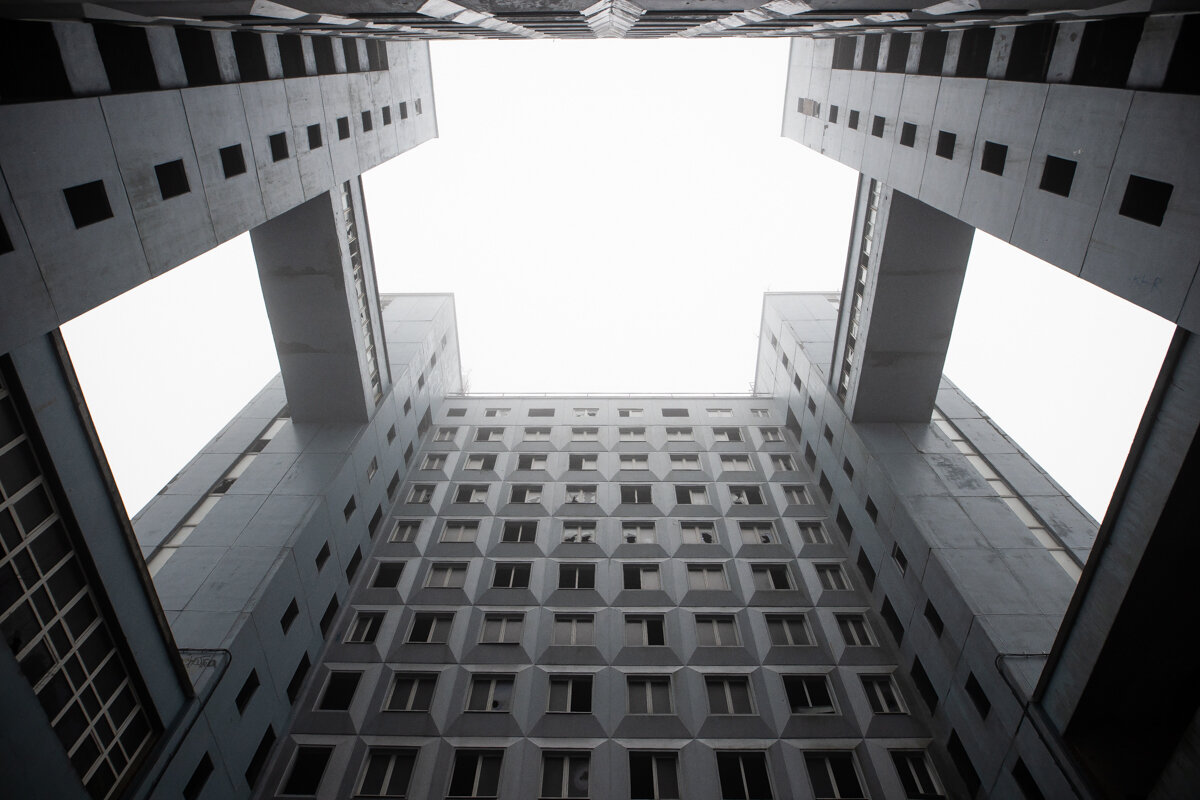 На балконах и открытых участках стены и стыки покрыты плесенью и грибком. Часть площадей поросла мхом. Некоторые помещения повреждены огнём — дело рук вандалов.