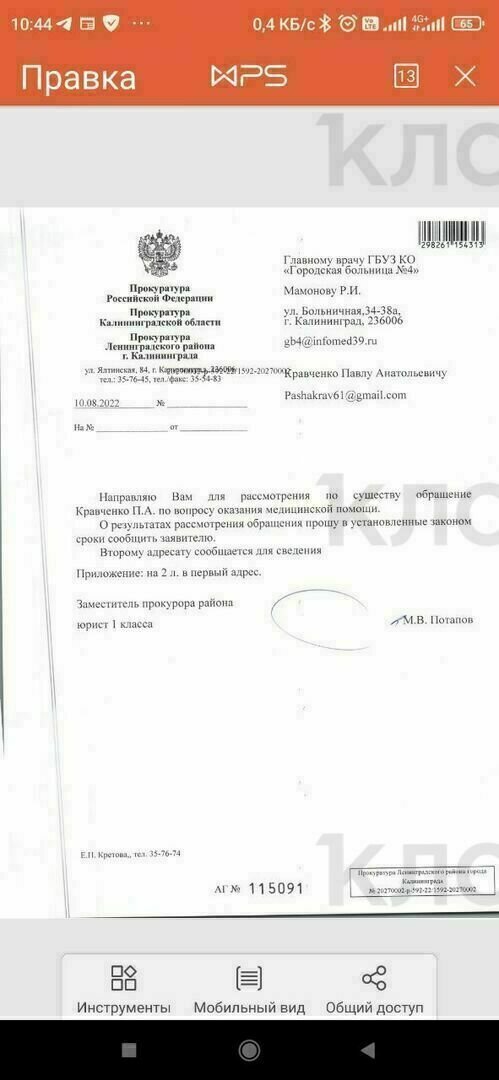 Пенсионер снова обратился в страховую, написал в прокуратуру и в Минздрав.