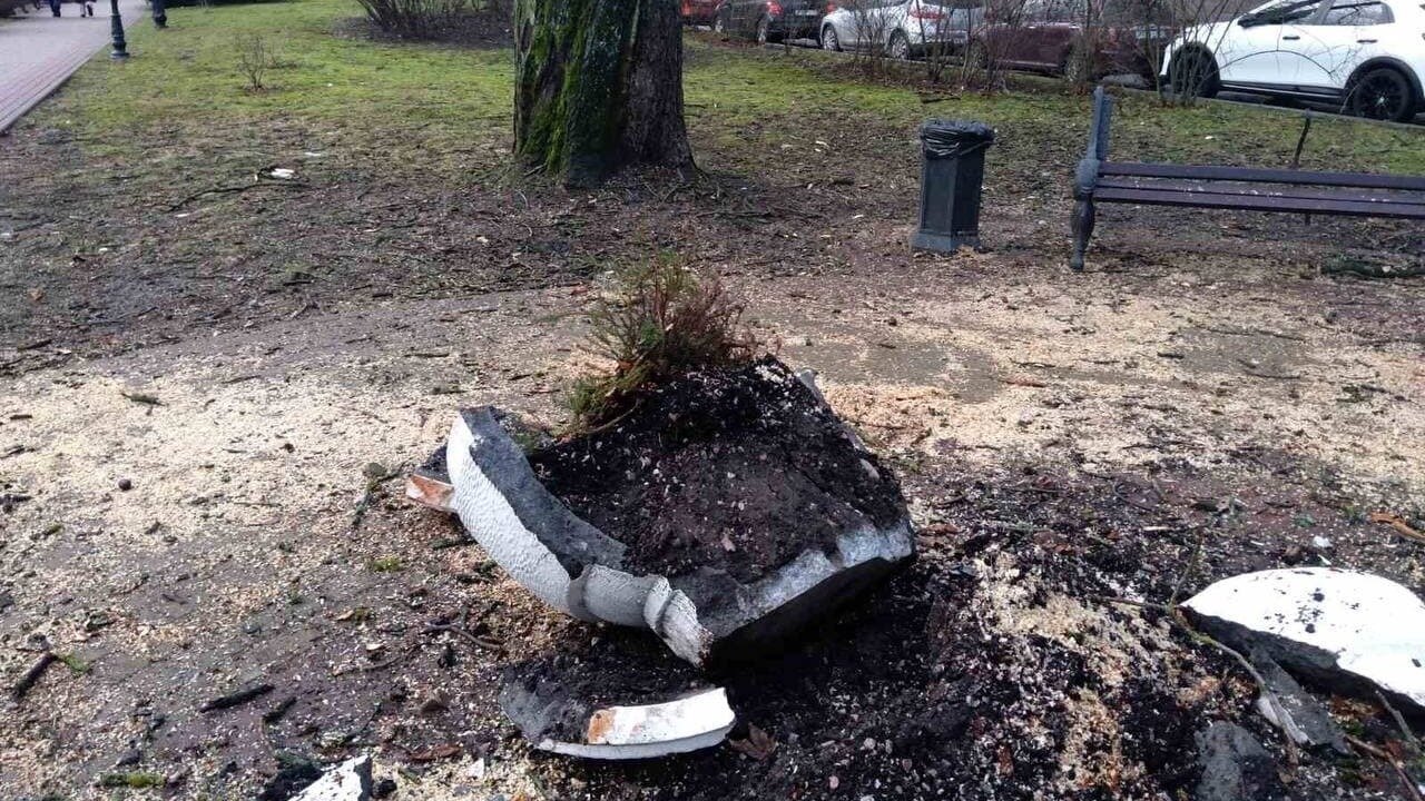 5. В Калининграде на Аллее энергетиков столетнее дерево разбило декоративный вазон.