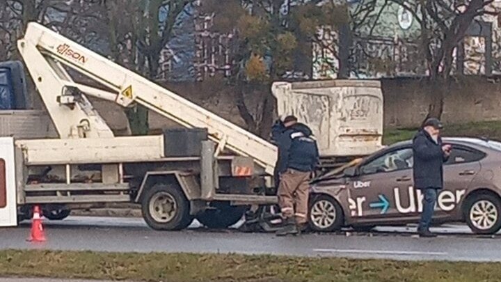7. В Калининграде легковая машина c наклейкой Uber врезалась в автомобиль-вышку.