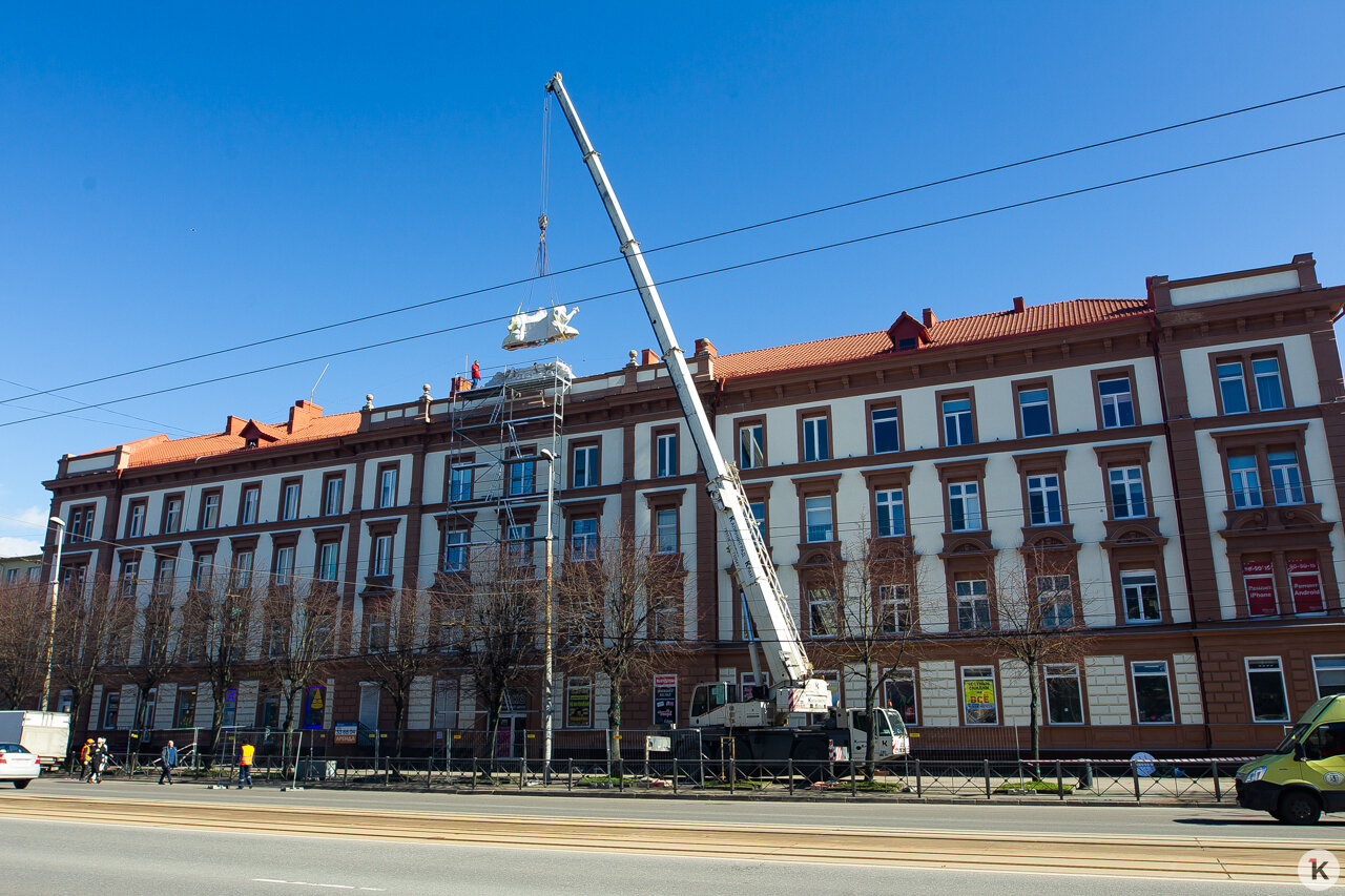 Но наконец звёзды сошлись. Первым крупным проектом стало восстановление акротерия (архитектурный элемент, вечающий здание — ред.) на здании бывшего управления железных дорог Восточной Пруссии на Ленинском проспекте.
