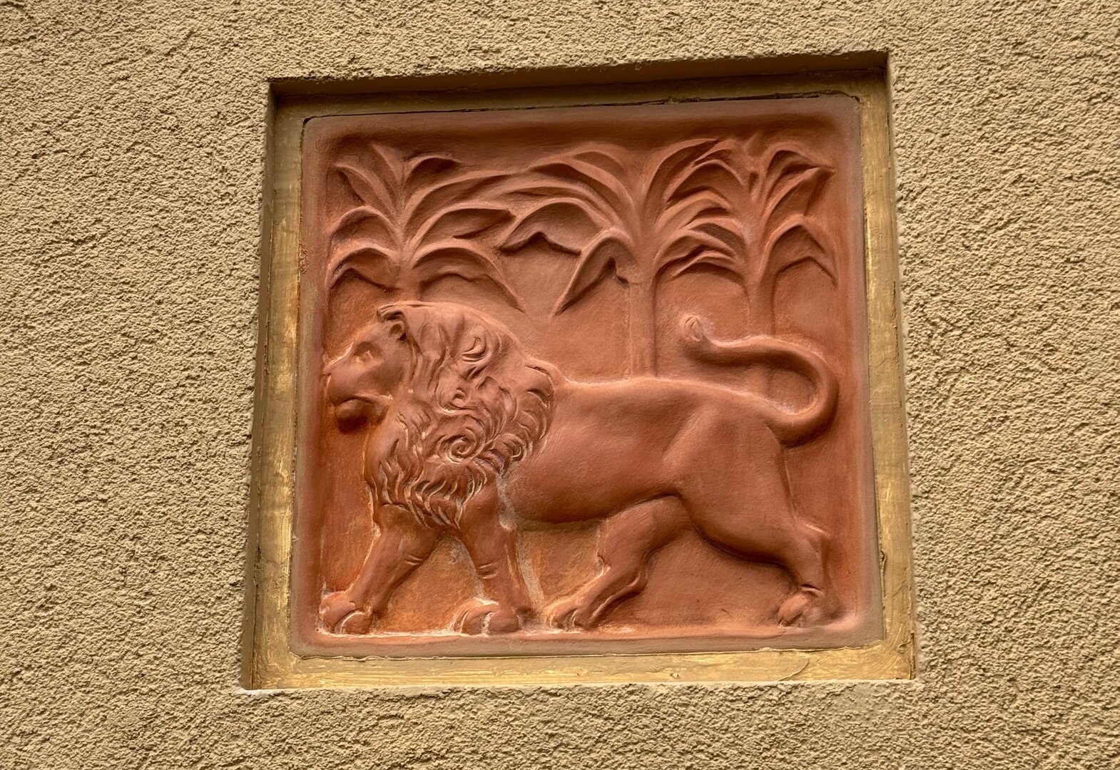 Но и это было ещё не всё! Оказалось, что тот самый спасённый лев из самого «правильного», близкого к оригиналу материала, выглядит на фоне старой керамики не благородно терракотовым, а просто каким-то «пошло розовым». Но выход удалось найти и тут.