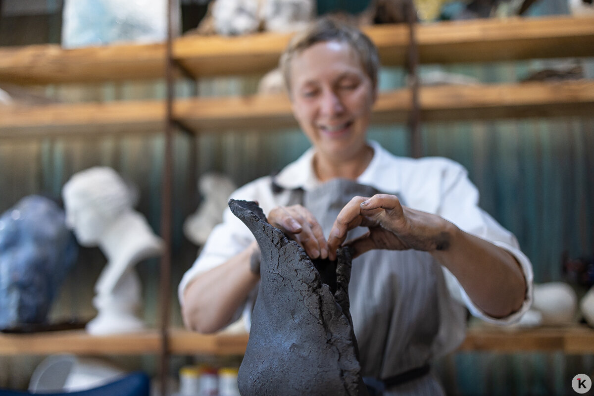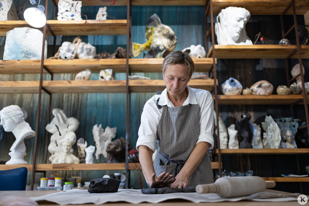 «Есть у меня одна знакомая, — говорит Наталья, задумчиво постукивая специальной палочкой по пласту глины, — она любит всё такое: банки, окурки... Ей на выставку даже специально привозили песок, и она там всё это художественно раскладывала. А я думаю: зачем? Живёшь в дерьме, дерьмо рисуешь, а потом ещё людям его показываешь?