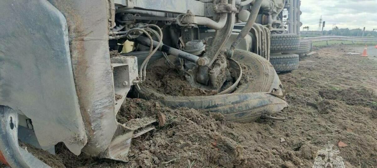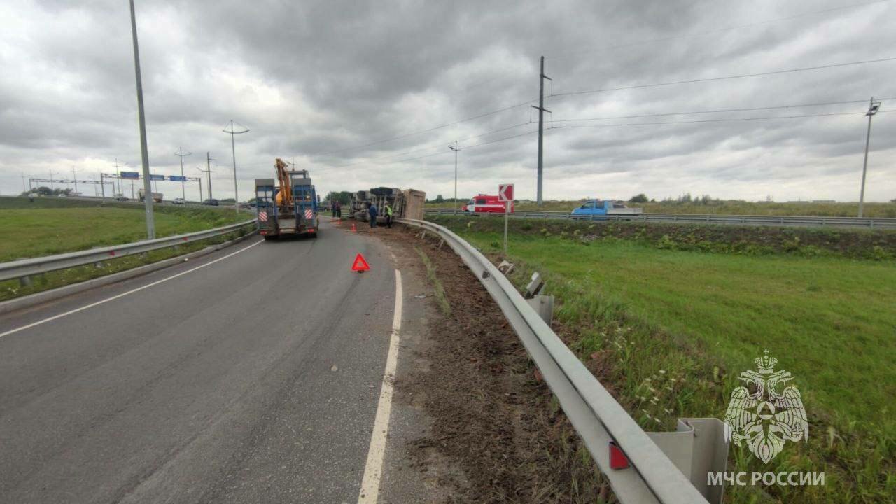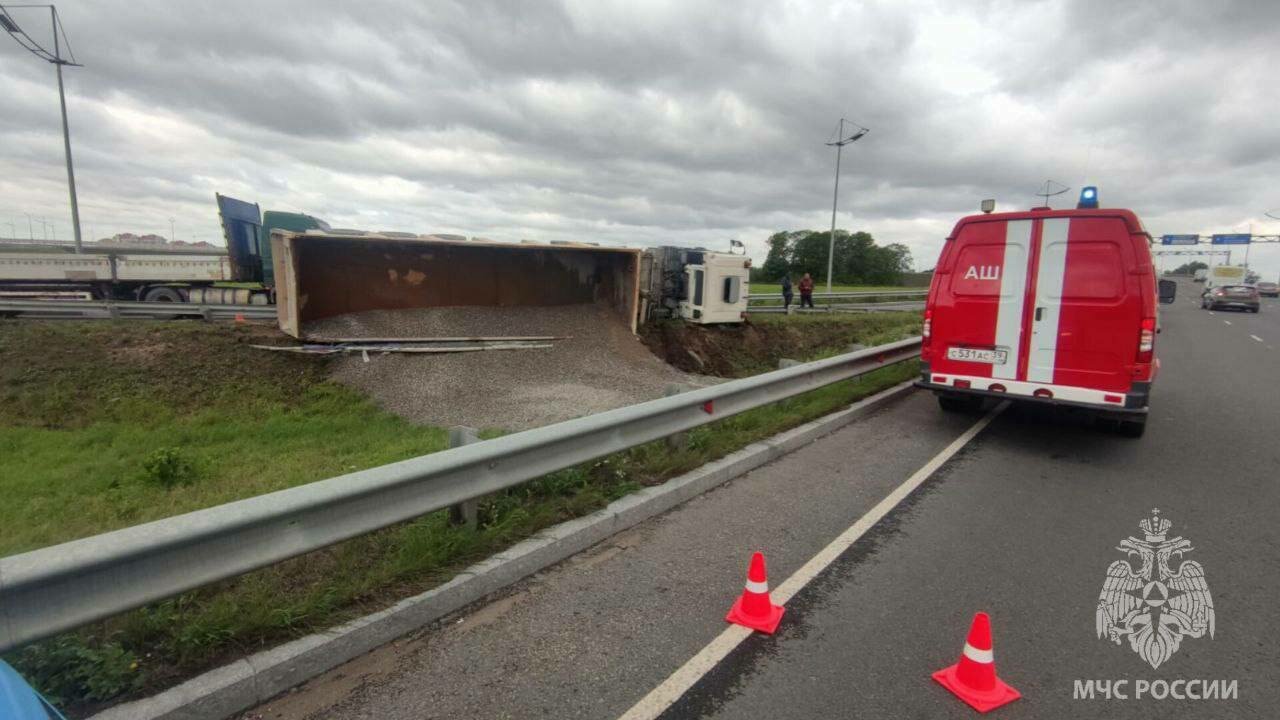 На окружной Калининграда опрокинулся грузовик со щебнем. Никто из людей не пострадал, рассказали в региональном МЧС.