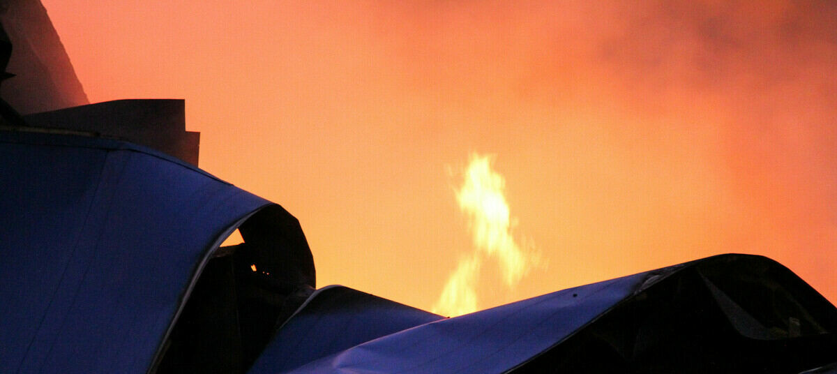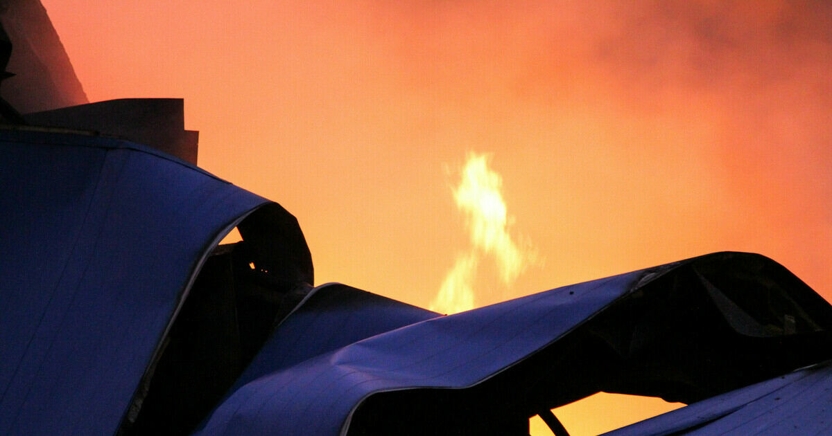 Вызов поступил в Центр управления в кризисных ситуациях в понедельник, 14 августа, в 23:20. Огонь охватил деревянную постройку, где хранились корма для животных на улице Лесной.