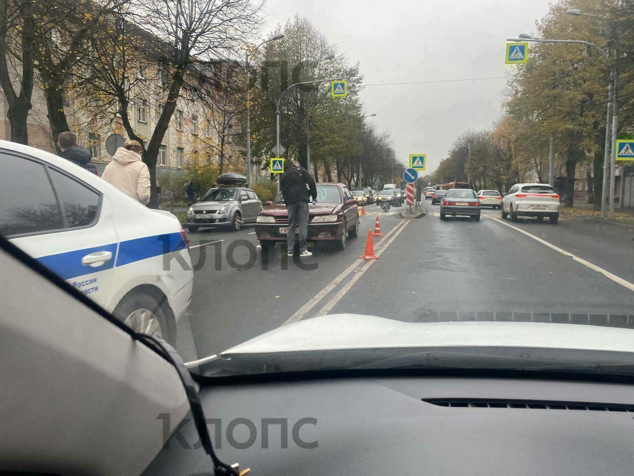 «Я проезжал там около 10:00. В нескольких метрах за «зеброй» стояла легковушка с помятым капотом и разбитым лобовым стеклом. Там крутился парень, видимо, водитель, были две патрульные машины. Удар, судя по машине, был приличный», — сообщил «Клопс» очевидец.
