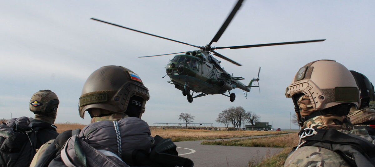 Военные тренируются в полном боевом снаряжении на высотах около 800 метров как в светлое, так и в тёмное время суток. В учениях участвуют транспортно-боевые вертолёты Ми-8 морской авиации. Приземления разведчики оттачивают навыки захвата пленных, вывод из строя коммуникаций условного противника, применение системы «ГЛОНАСС» и т.д.