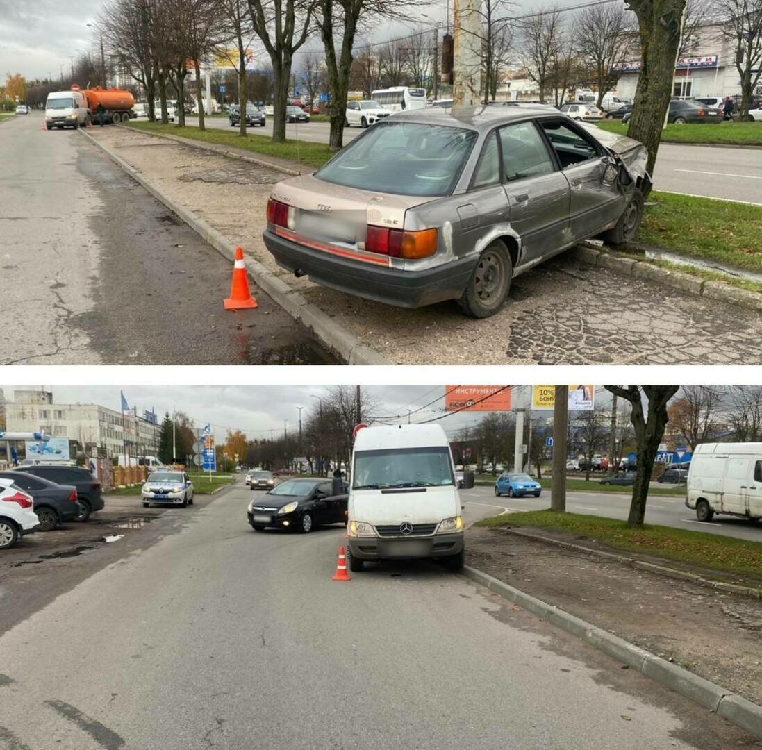 ДТП произошло в понедельник, 13 ноября, в 8:05, в районе дома №184 по Московскому проспекту. Audi с 20-летним парнем за рулём на нерегулируемом перекрёстке не уступил дорогу микроавтобусу Mercedes. После Audi влетел в ещё одну машину такой же марки, а затем вращался в дерево. Осколки от легковушки повредили два припаркованных автомобиля: Volvo и Mazda. Водитель первой Audi получил травмы.