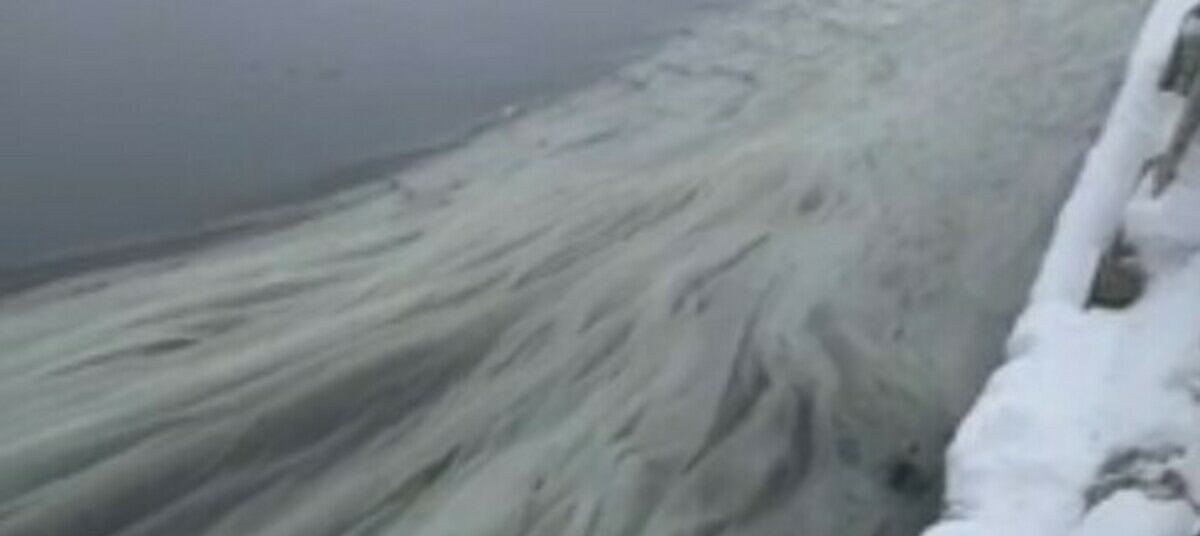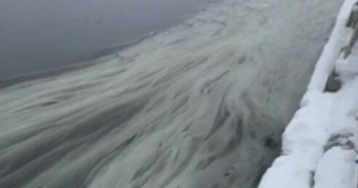 В Калининграде из-за сильных осадков Верхнее озеро покрылось снежурой. Видео необычного явления «Клопс» прислали очевидцы в понедельник, 27 ноября.