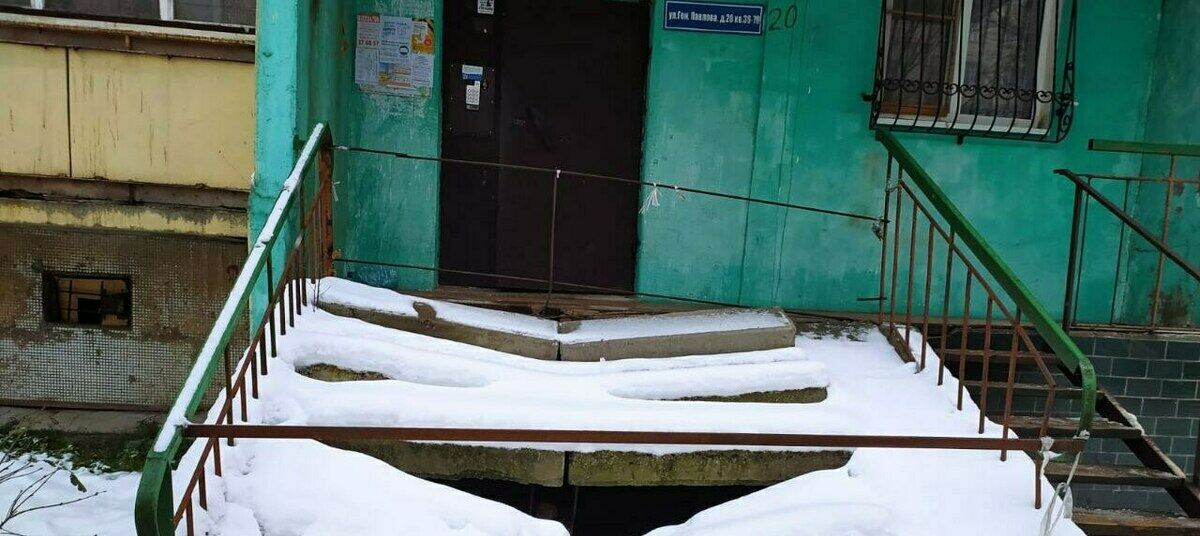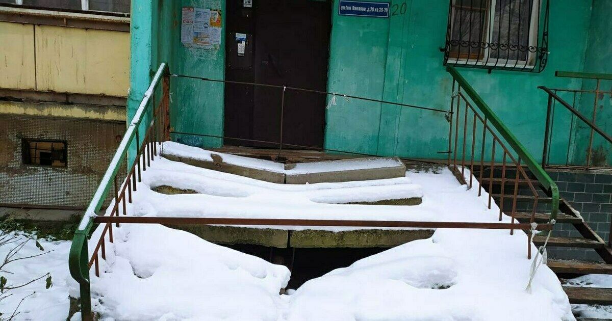 В девятиэтажке на улице Генерала Павлова, 20, разрушенные ступени к подъездам стали для части жильцов непреодолимой полосой препятствий. Что происходит в многострадальном доме, «Клопс» рассказала старшая по дому Светлана.