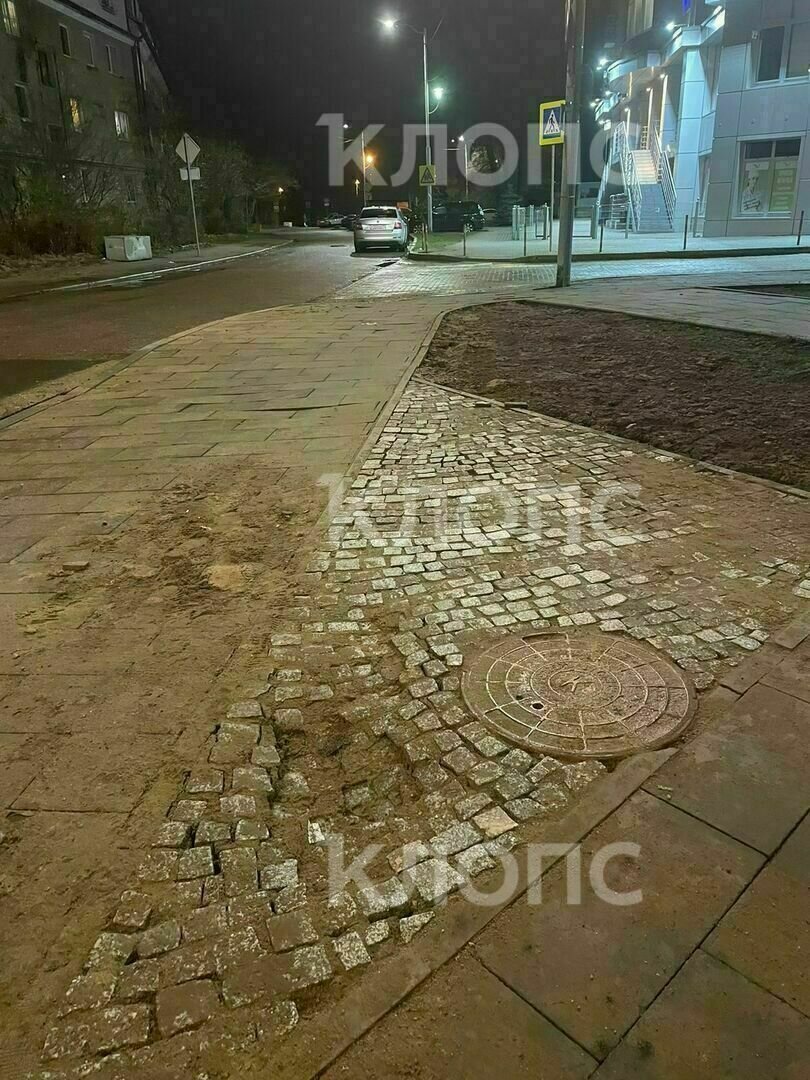 «Она ужасная, мы с соседями очень недовольны: вся шатается, кривая, ещё и трескается. Плитка такого формата лежит в новом сквере на Фестивальной, но там она с фасками, покрытие другое и лежит она ровно. Местами рядом с плиткой проваливается и брусчатка», — говорит горожанка.