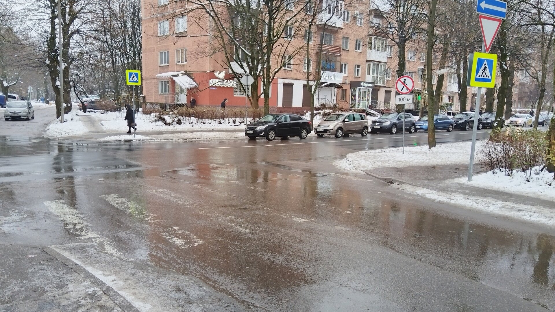 В Калининграде после ремонта Судостроительной для жителей не предусмотрели пешеходный переход в районе пивоварни «Понарт». Тротуар упирается в тупик, а чтобы не нарушить ПДД, обходить нужно несколько сотен метров. Навигатор «Яндекс. Карты» оценил легальный маршрут в 7 минут. Альтернатива — перебежать через 2-полосную дорогу (всего 8 метров), которая очень часто не загружена. Большинство пешеходов именно так и поступают.