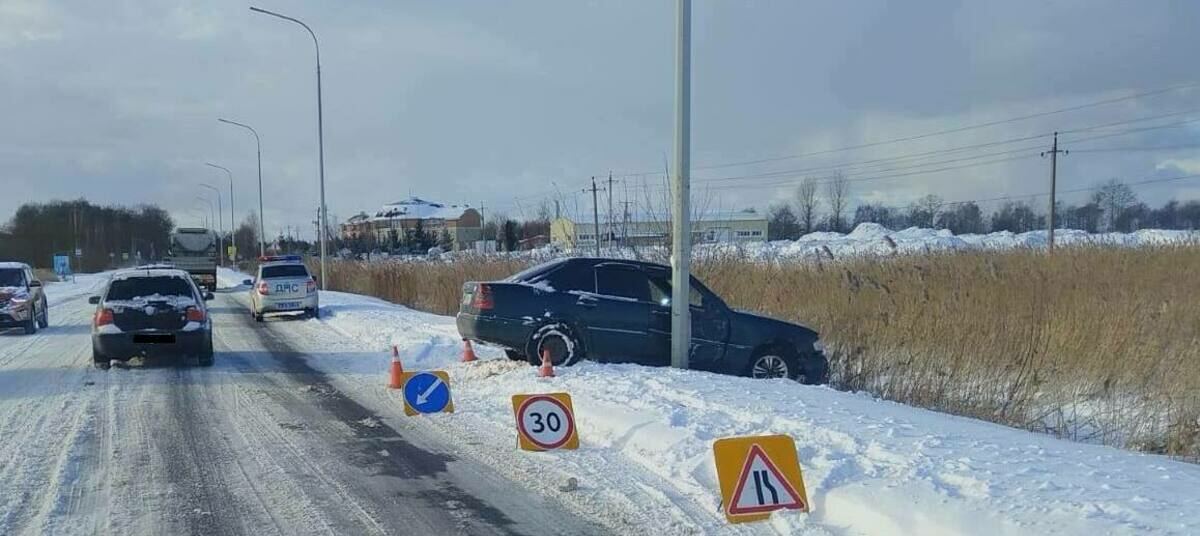 В Гурьевском районе Mercedes вынесло с заснеженной дороги в кювет и врезался в фонарный столб. Об этом сообщает пресс-служба регионального УМВД.